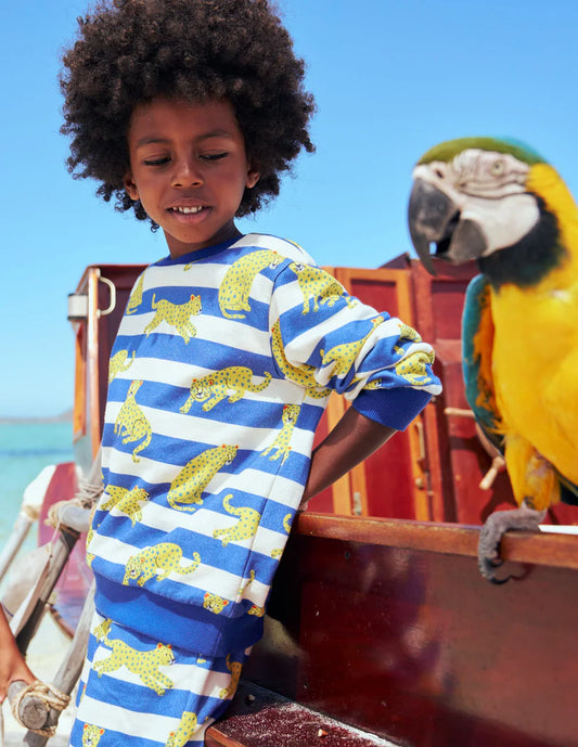 Printed Sweatshirt-Bright Blue Leopard Stripe