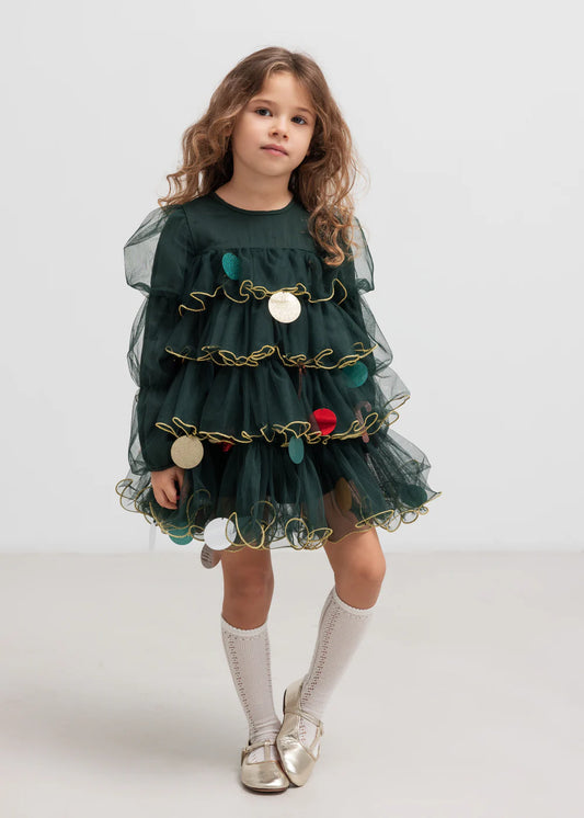 Velour Tulle Appliqué Dress-Robin Motif