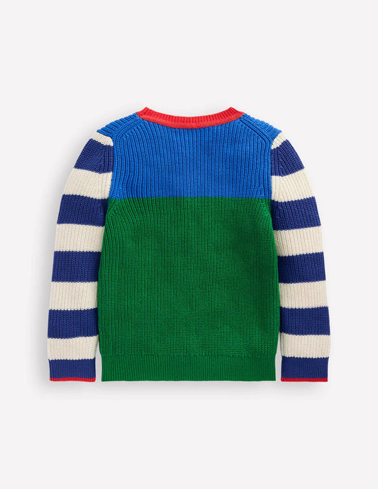 Everyday Cotton Jumper-Bright Blue/Ecru Marl Stripe