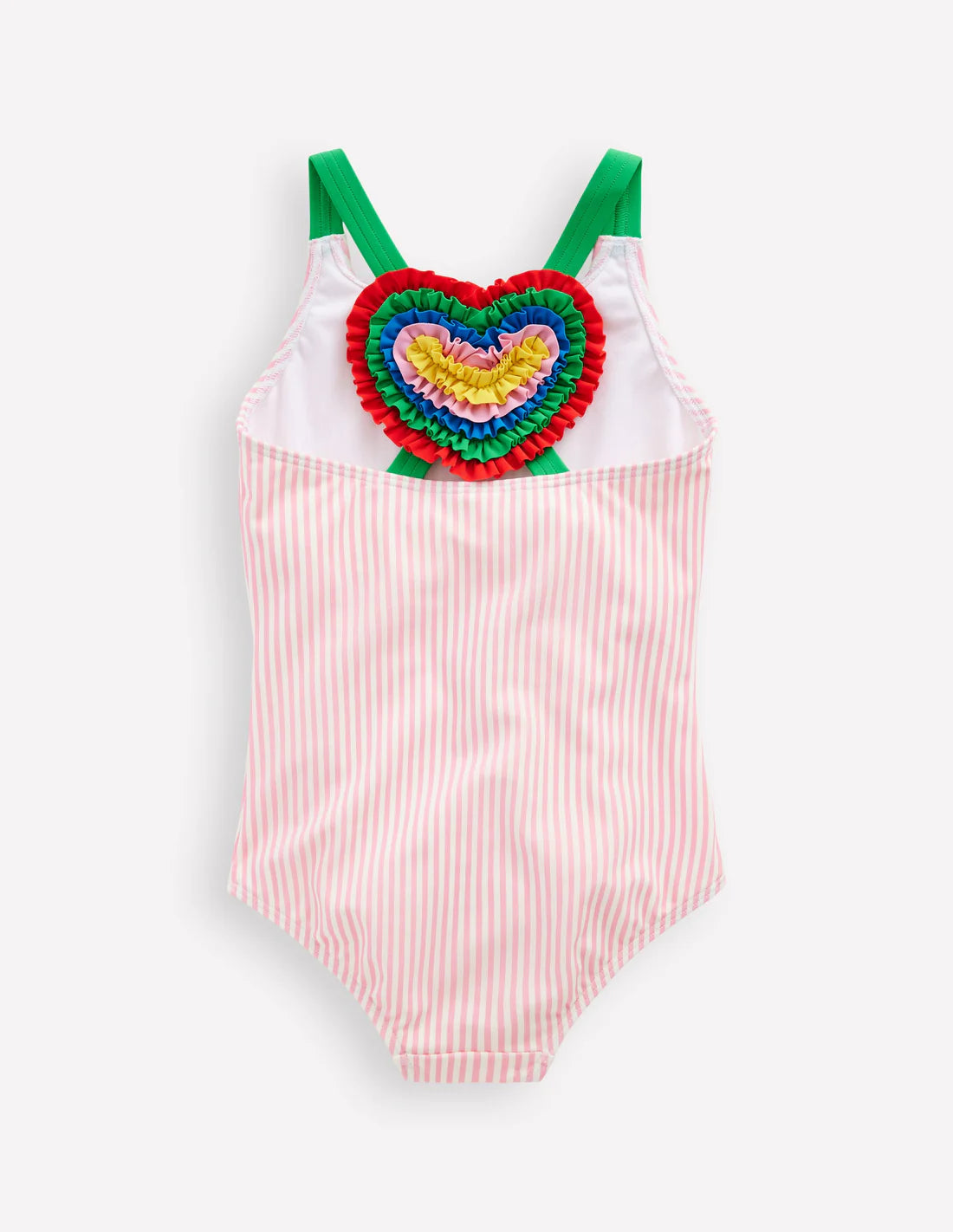 This swimsuit just made beach time even more fun. How? It’s playful back design, which shows off colour-contrasting straps and a bold appliqué motif.