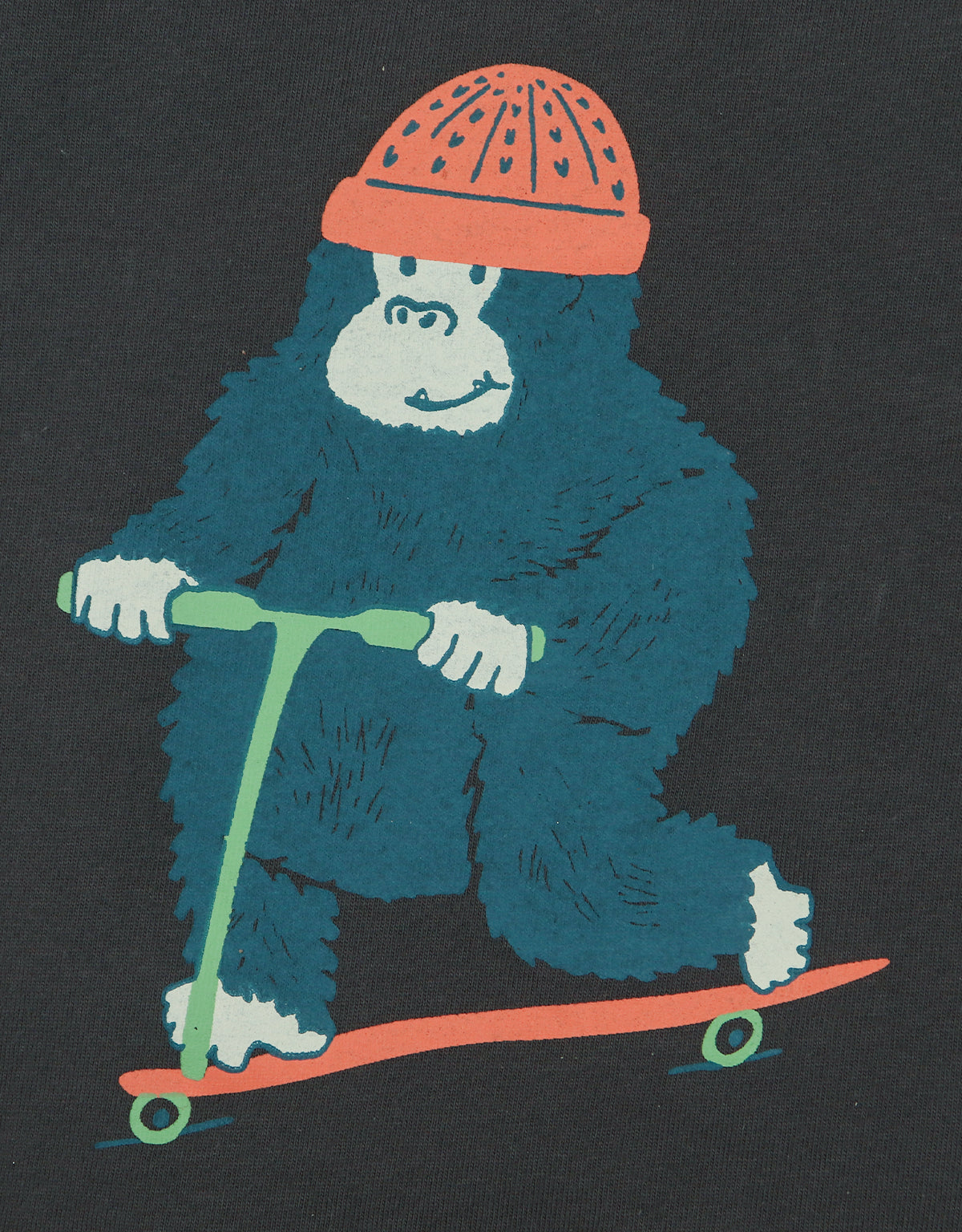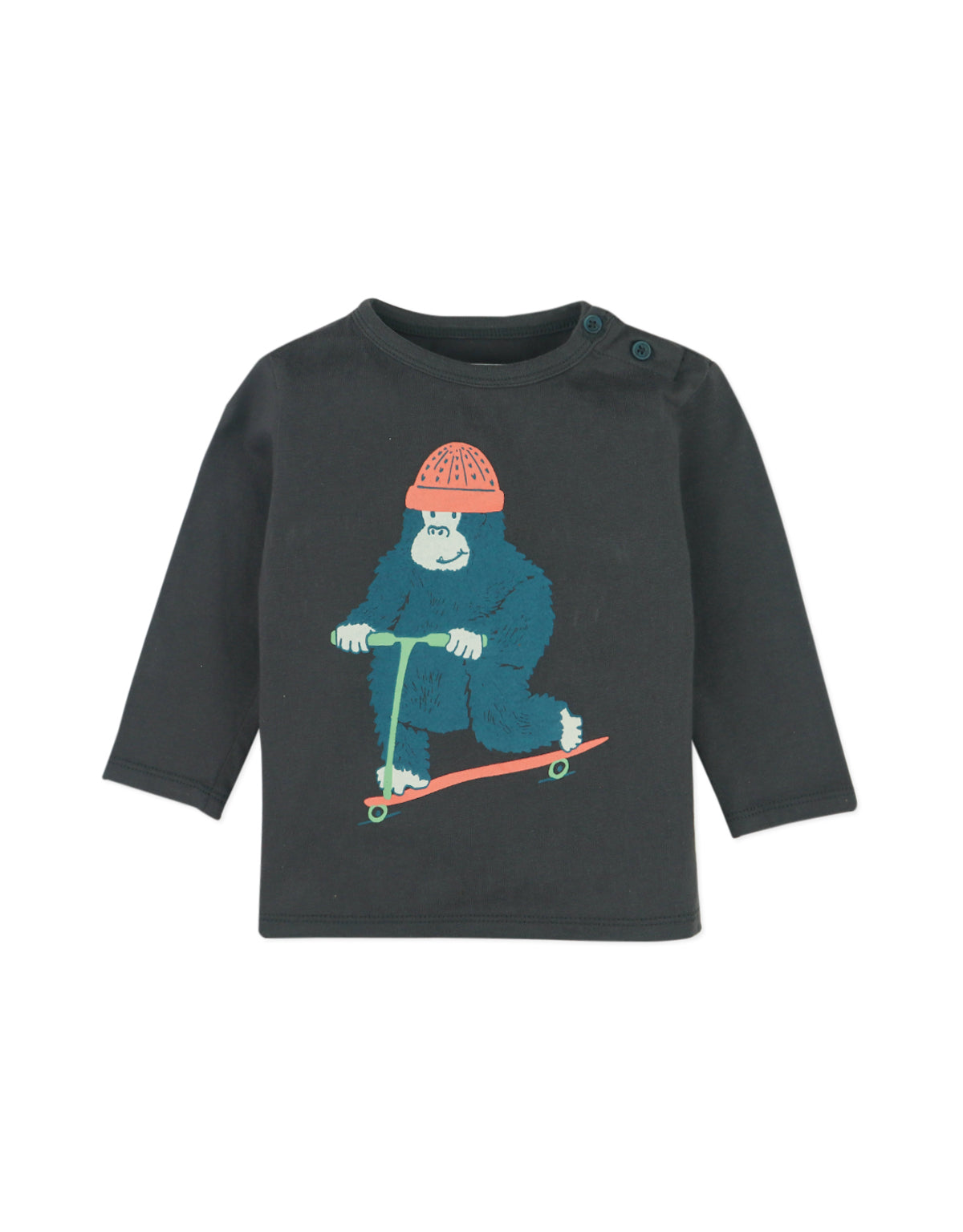 Soft, comfy, and unforgettable, our Baby Charlton Pullover Tee featuring a playful Gorilla on wheels graphic is your little one's new go-to for chill days.