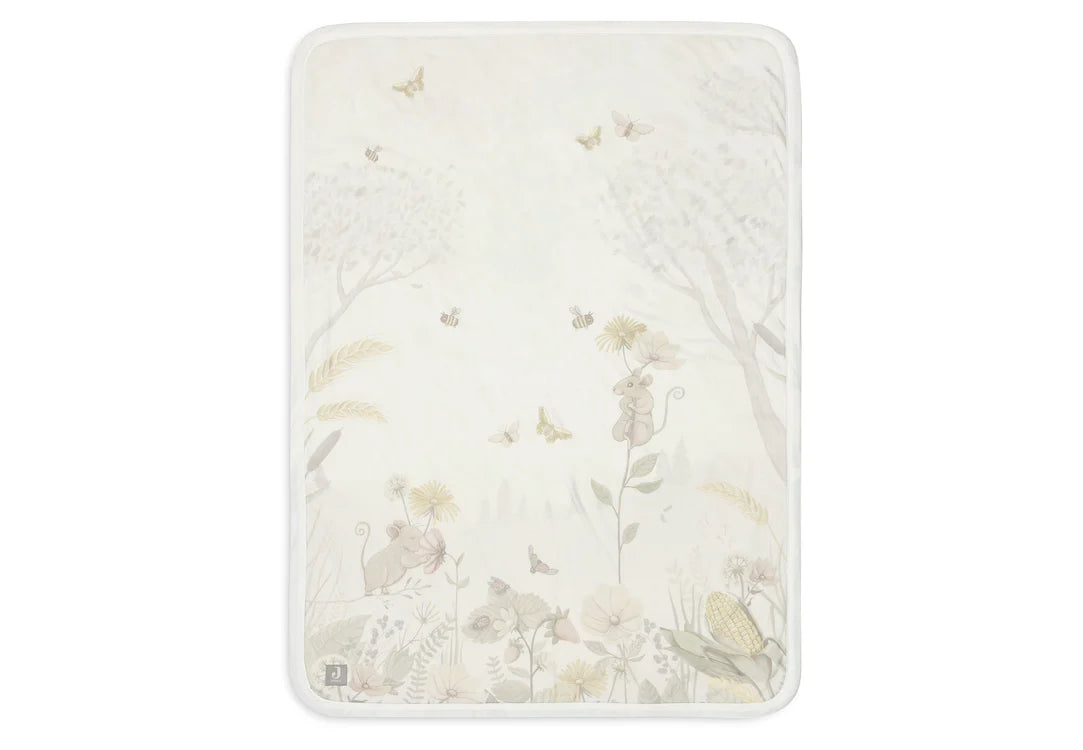 This Dreamy Mouse blanket with panel print isn't just perfect for your little one. This super soft blanket has an adorable print with little mice, flowers and bees, printed in soft colours that fit your baby room perfectly. The top is made of stretchy jersey with panel print and the bottom is covered with the softest fleece you've ever felt.