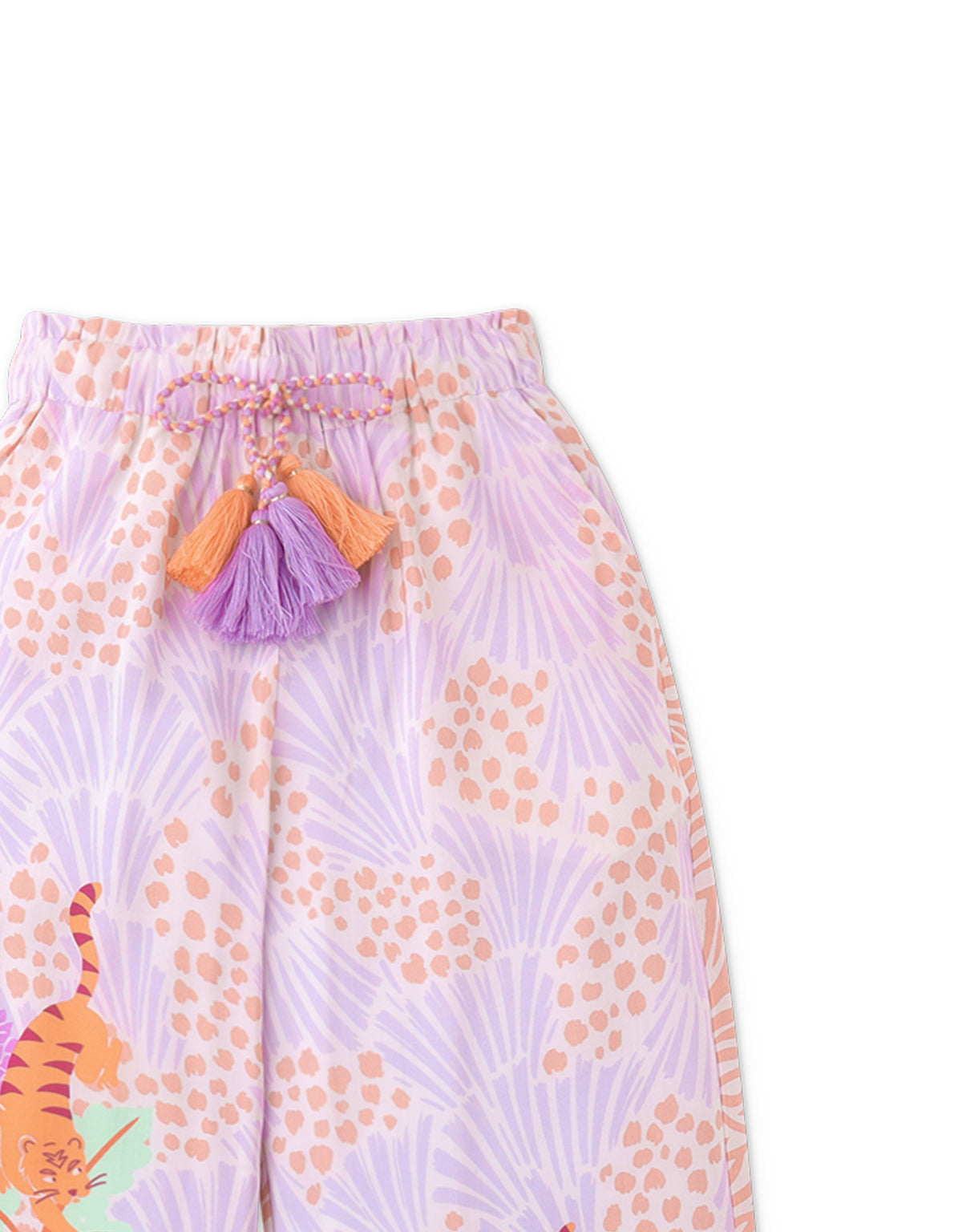 Unleash her wild side with our tiger-printed Shiv pants, perfect for little adventurers who roar with style.