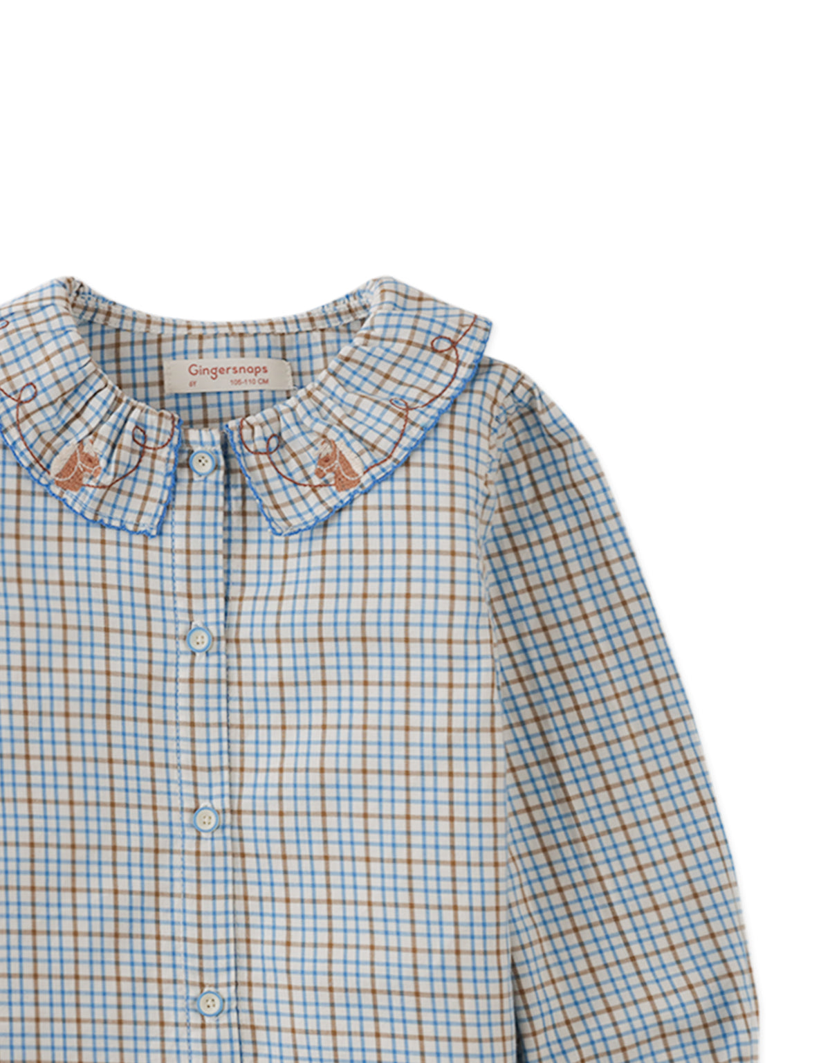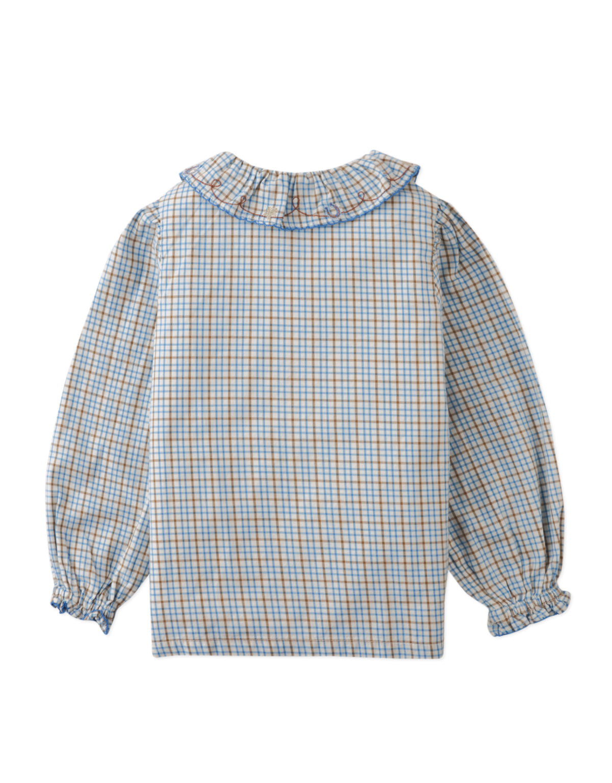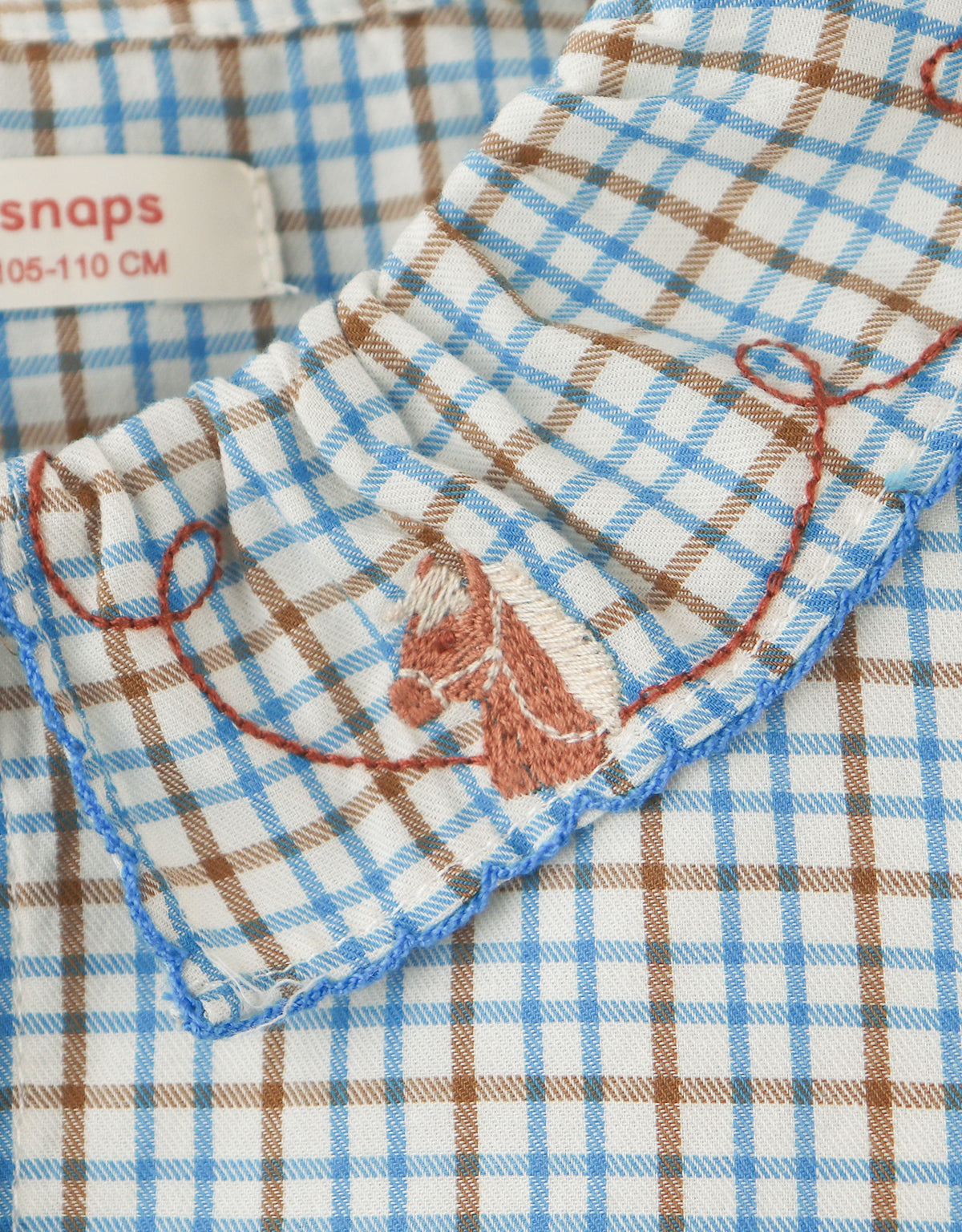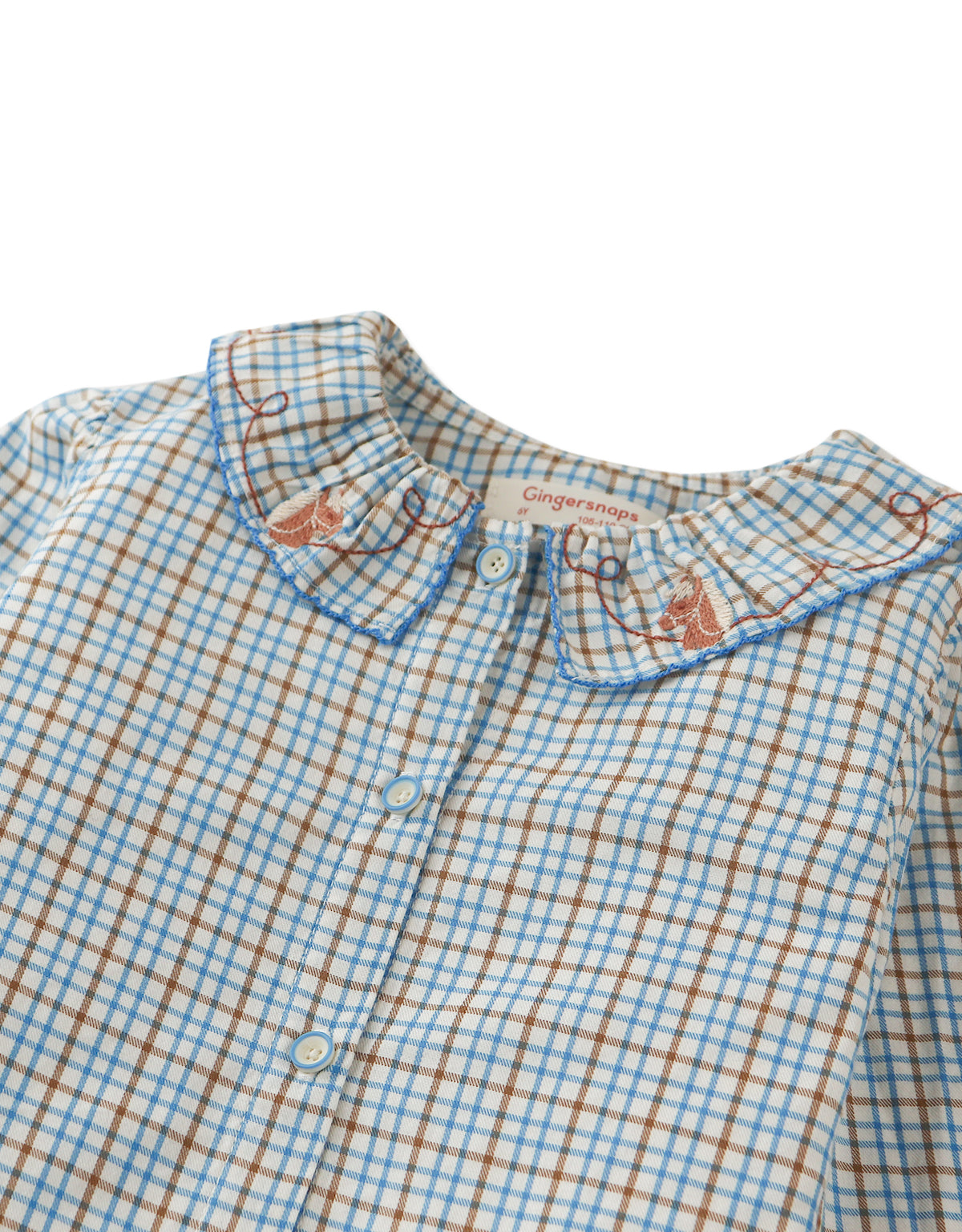 Add a touch of rustic charm to your little one's wardrobe with the Laurel Long Sleeve Blouse in Rancher checkered, featuring a beautifully embroidered horse on the collar!