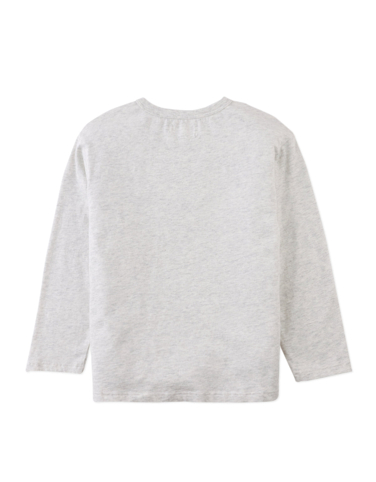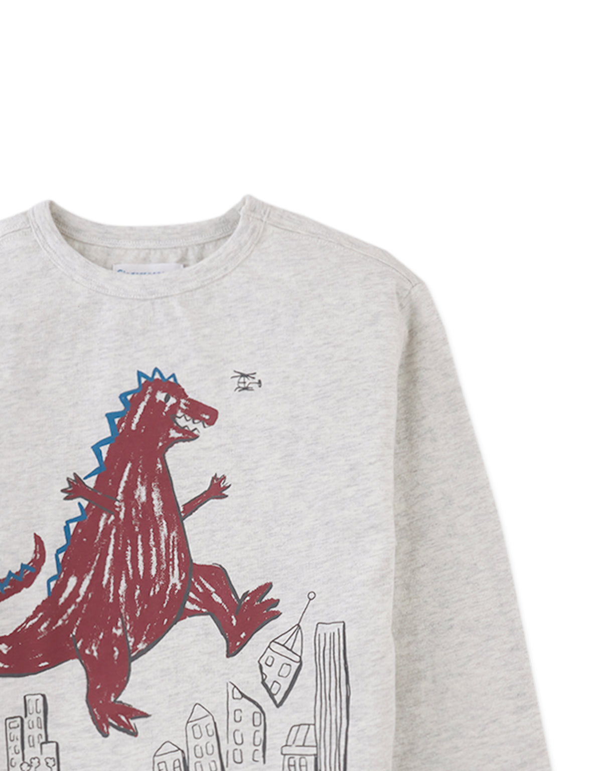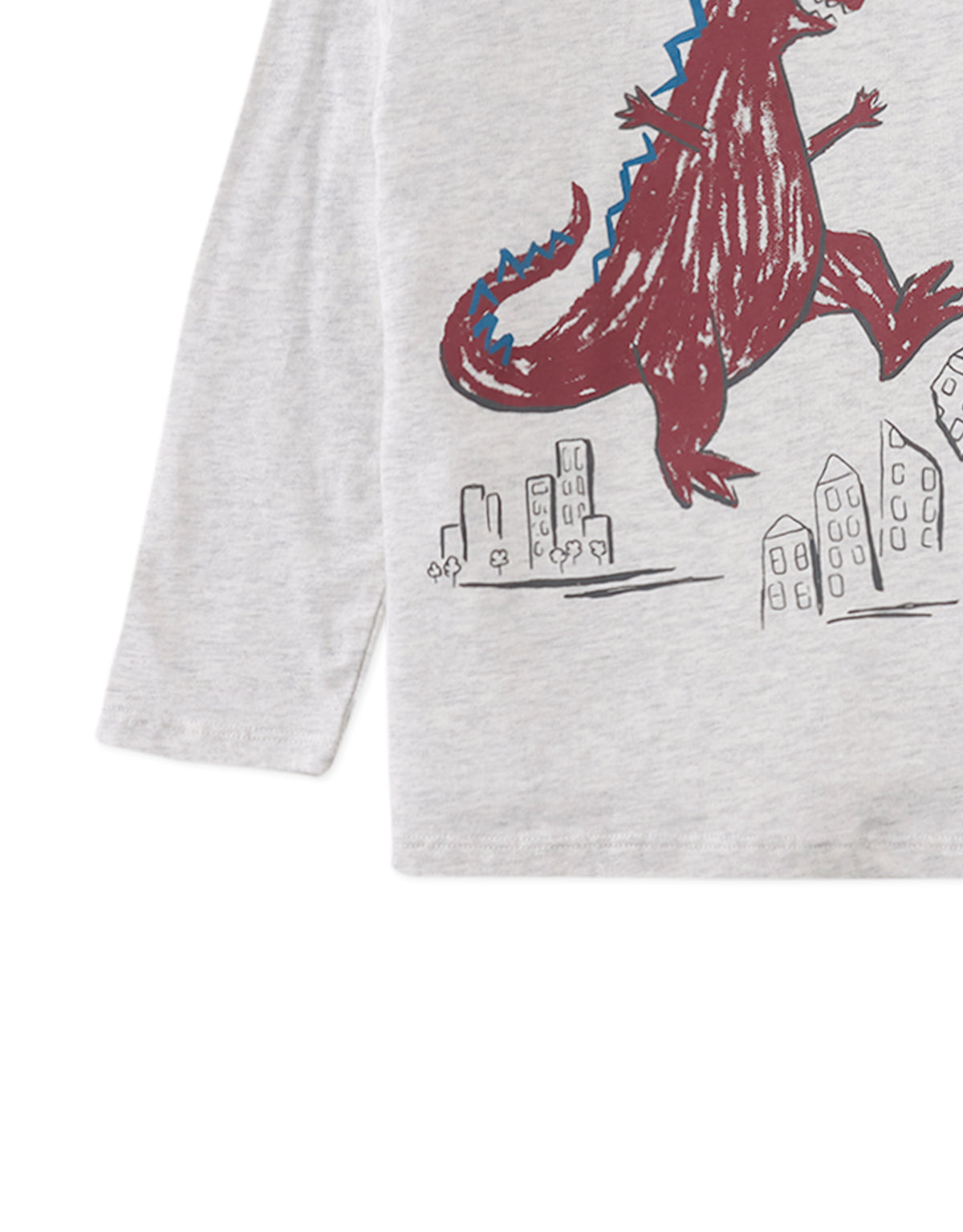 Make a roaring statement with our Dmitry Long Sleeve T-Shirt in Gray Melange, featuring a fierce Dino Smash print.