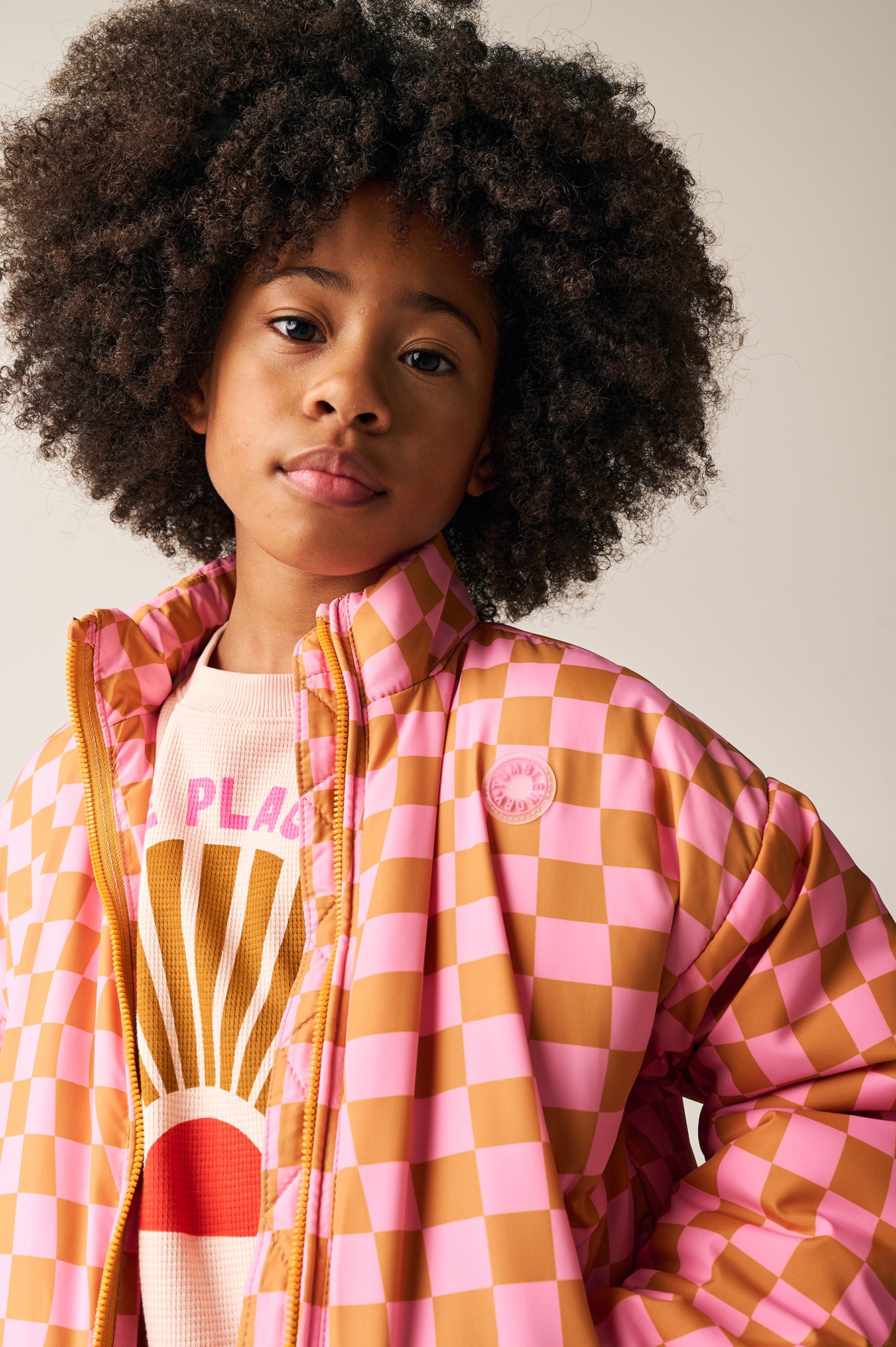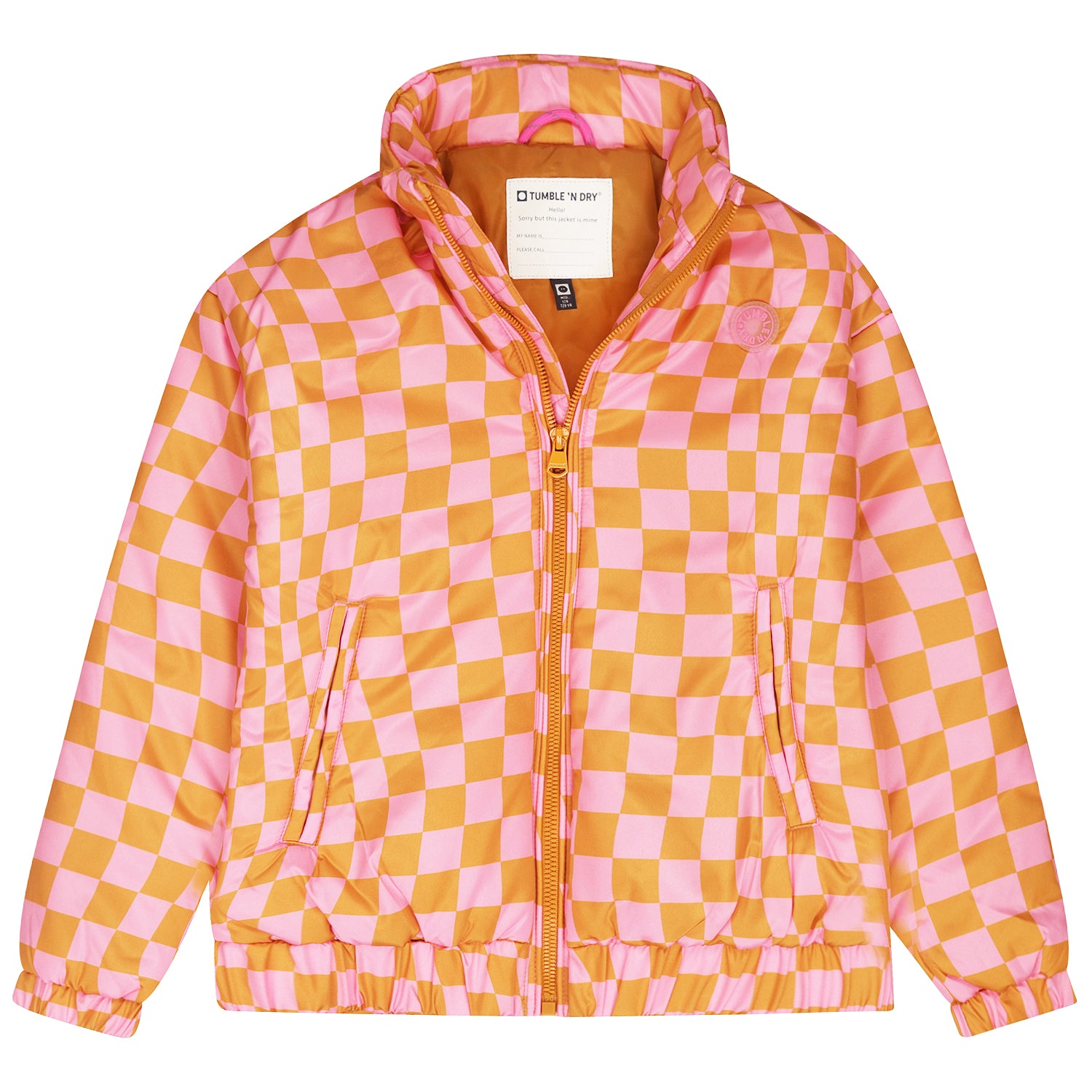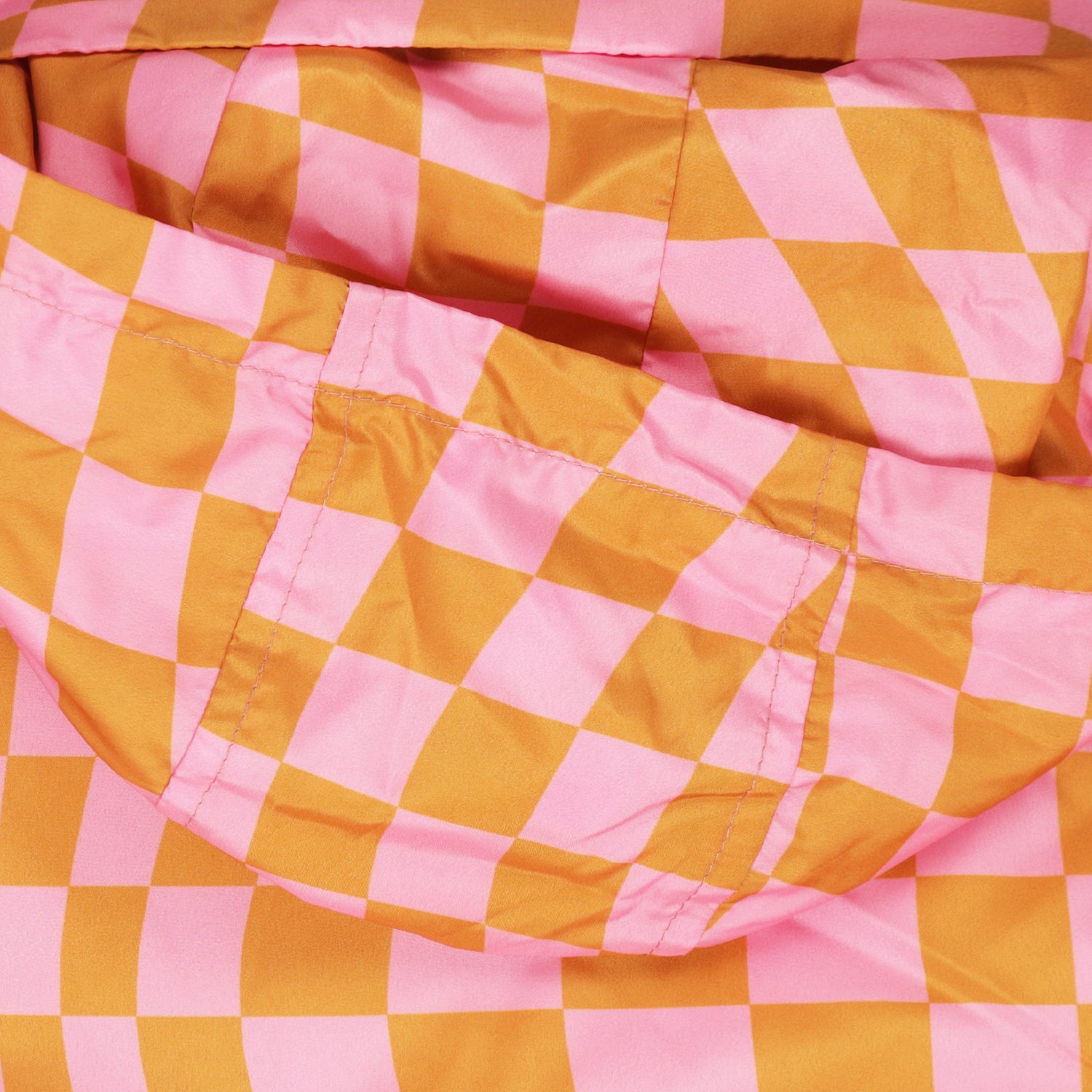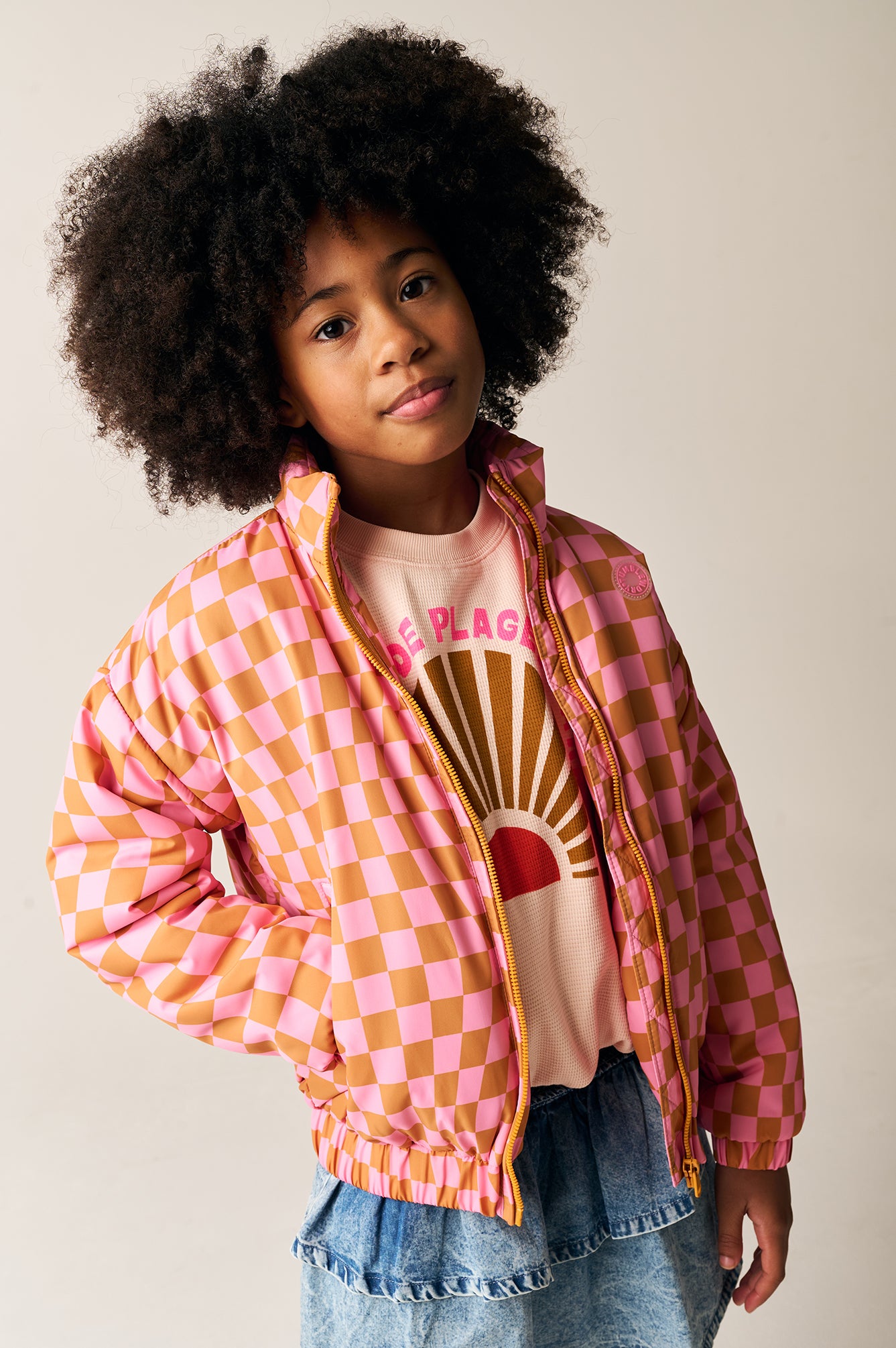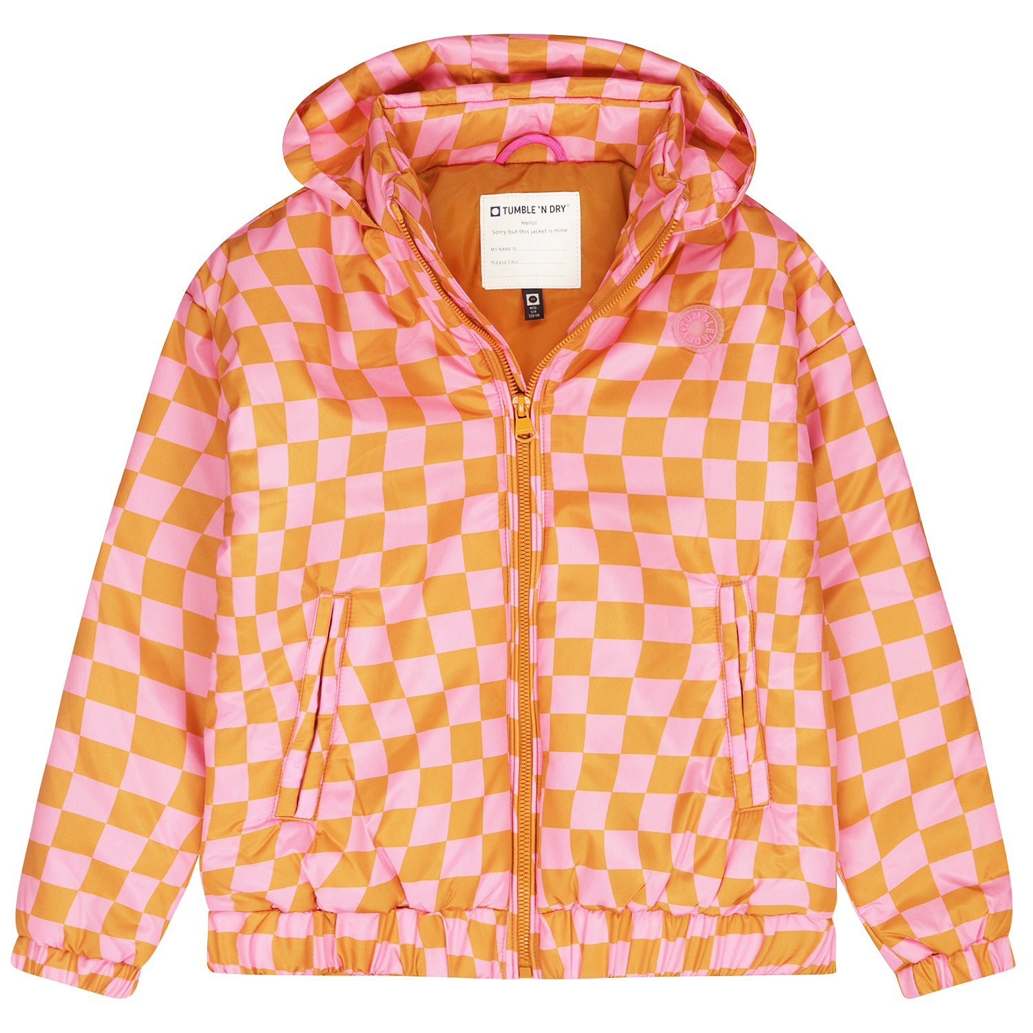 This eye-catching kids' jacket with a colourful check print in pink and orange adds a cheerful twist to any outfit. The jacket offers a light and breathable fit, ideal for the spring and summer months. The model features a practical zip, elasticated cuffs and a hood for extra protection against wind and rain. The fabric is durable and comfortable, perfect for active kids. Combining functionality with playful style, this jacket is a must-have for any adventurous wardrobe.