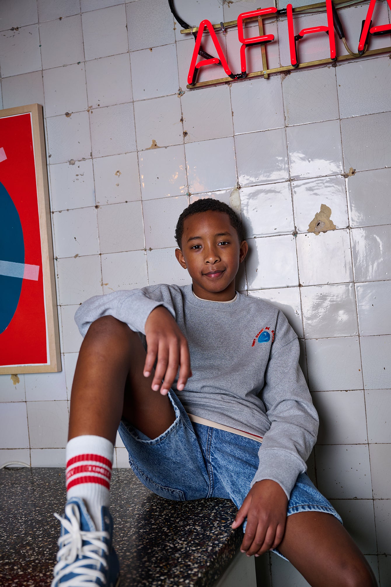 This comfortable sweater for boys is an ideal choice for everyday use. The light grey melange colour matches any outfit, while the cheerful chest design with a smiley face and the text "Don't Worry Be Happy" adds a playful detail. Made from soft French Terry fabric with a brushed inside, it offers optimum wearing comfort and a high-quality finish.