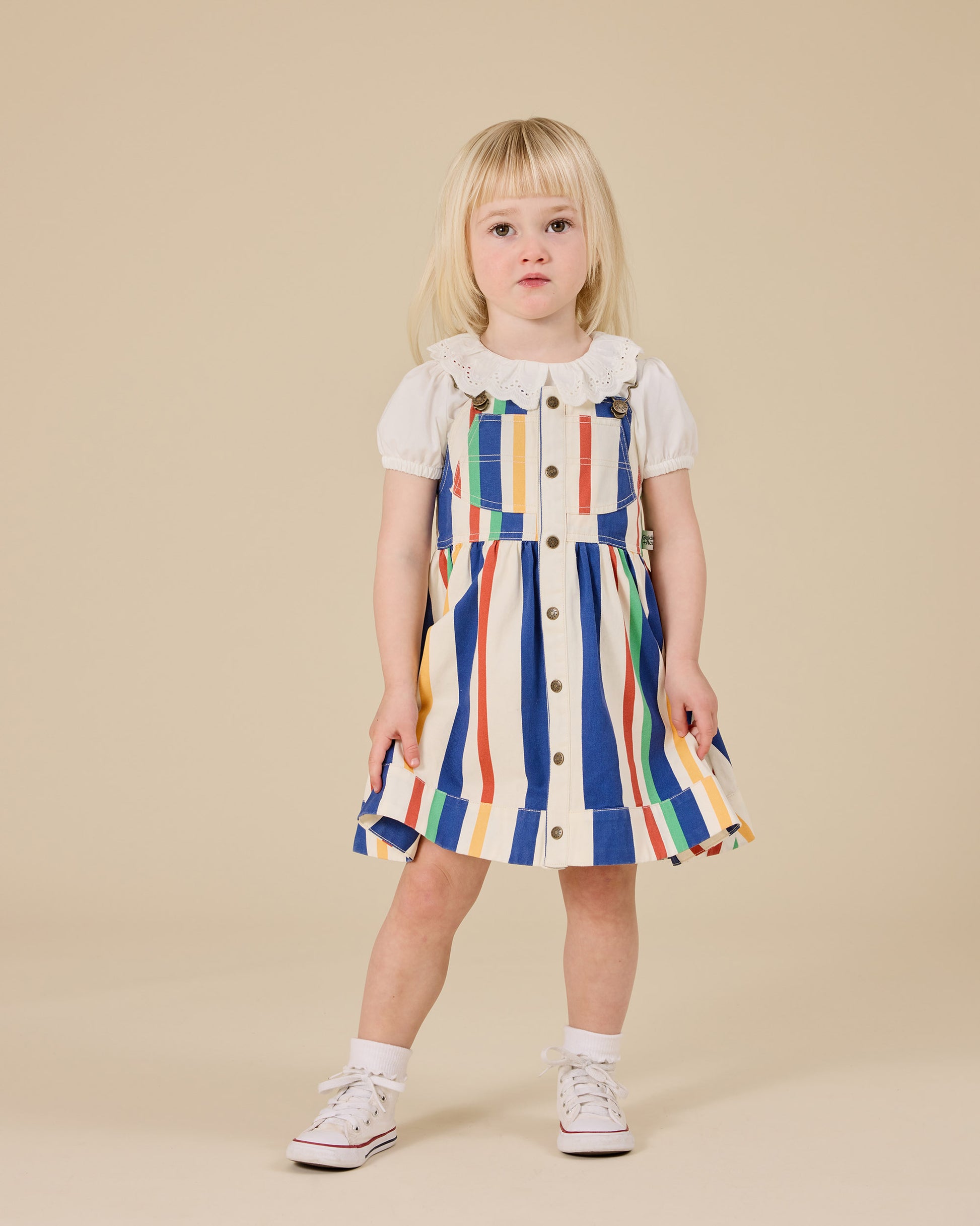 90's Bold Stripe Heidi Denim Pinafore Dress