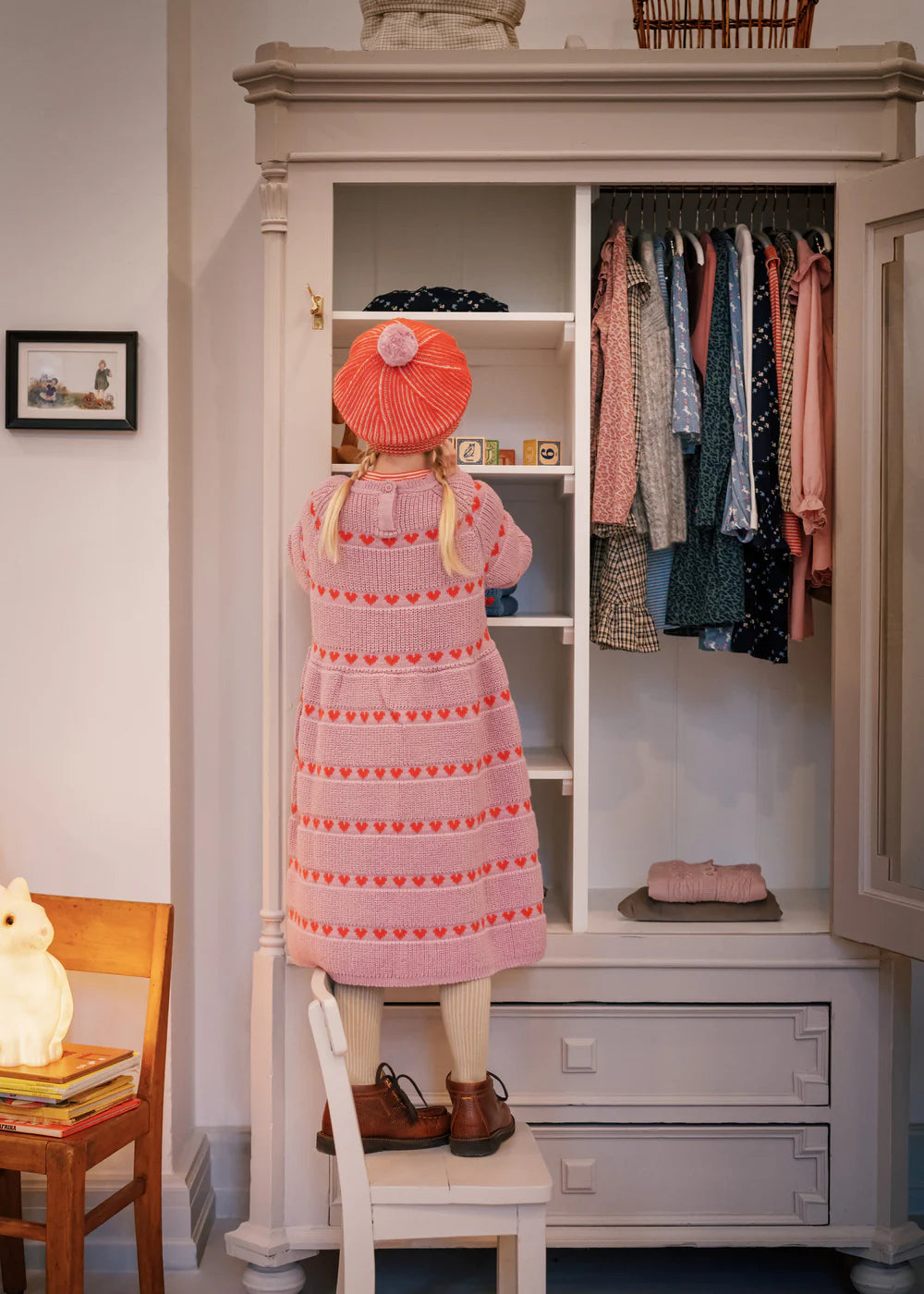 Knitted hat with a soft pompom on top. The hat has a round, slightly wavy shape and fits well on the head.