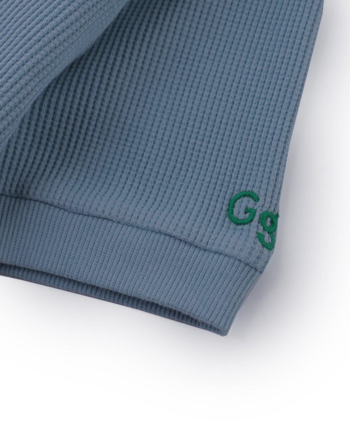 Comfy never looked so cool! The Asher V-neck waffle polo combines a relaxed fit and effortlessly serene blue for a touch of sophistication.