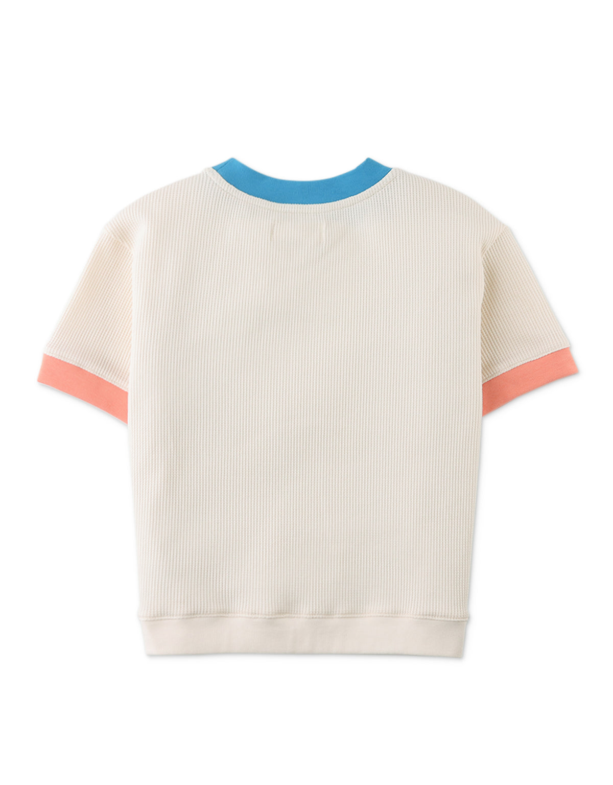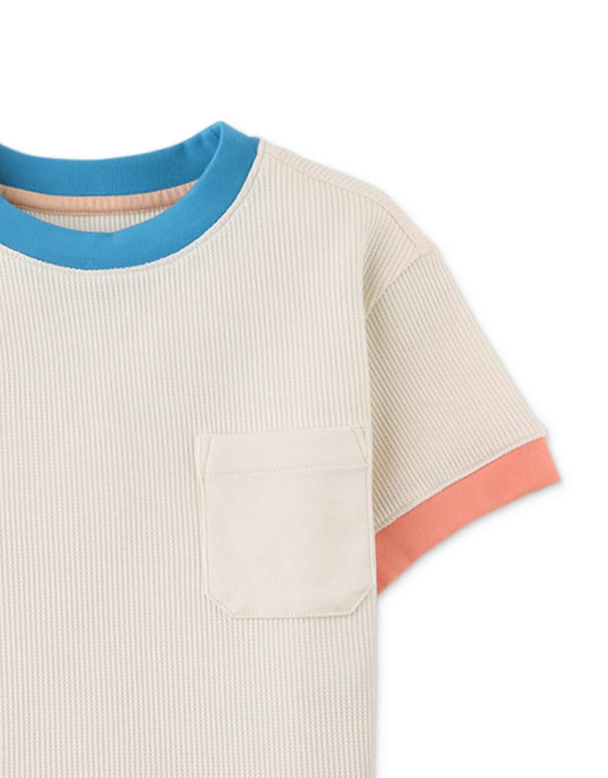 Keep your happy boy cool and adorable in our breathable beige Dustin Tee,