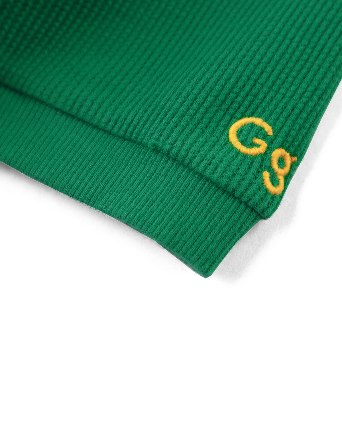 Elevate his style game with our effortlessly cool green Oliver V-neck waffle polo, blending comfort and sophistication for any occasion.