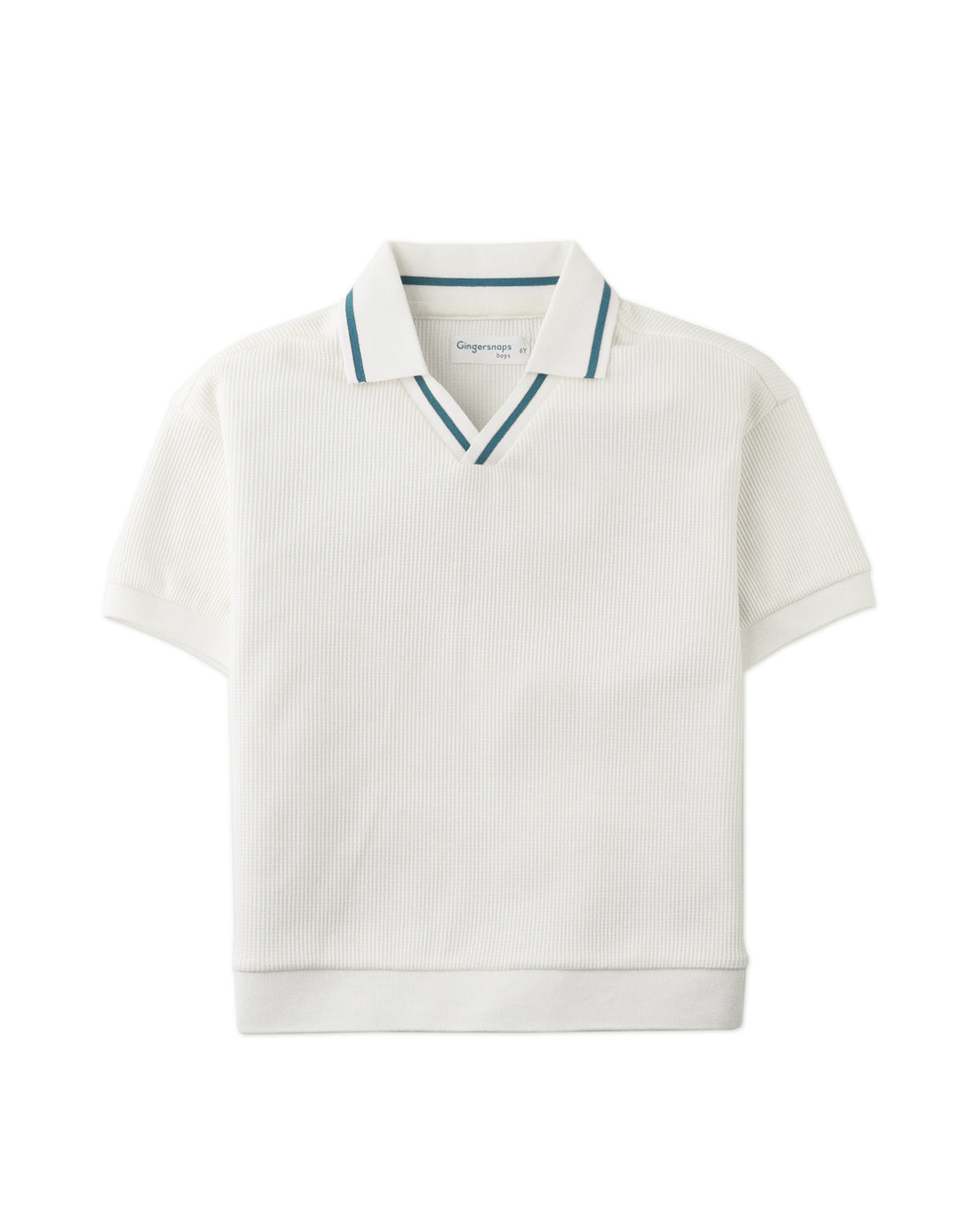 The Nico waffle knit polo boasts a comfy waffle texture for breathability.
