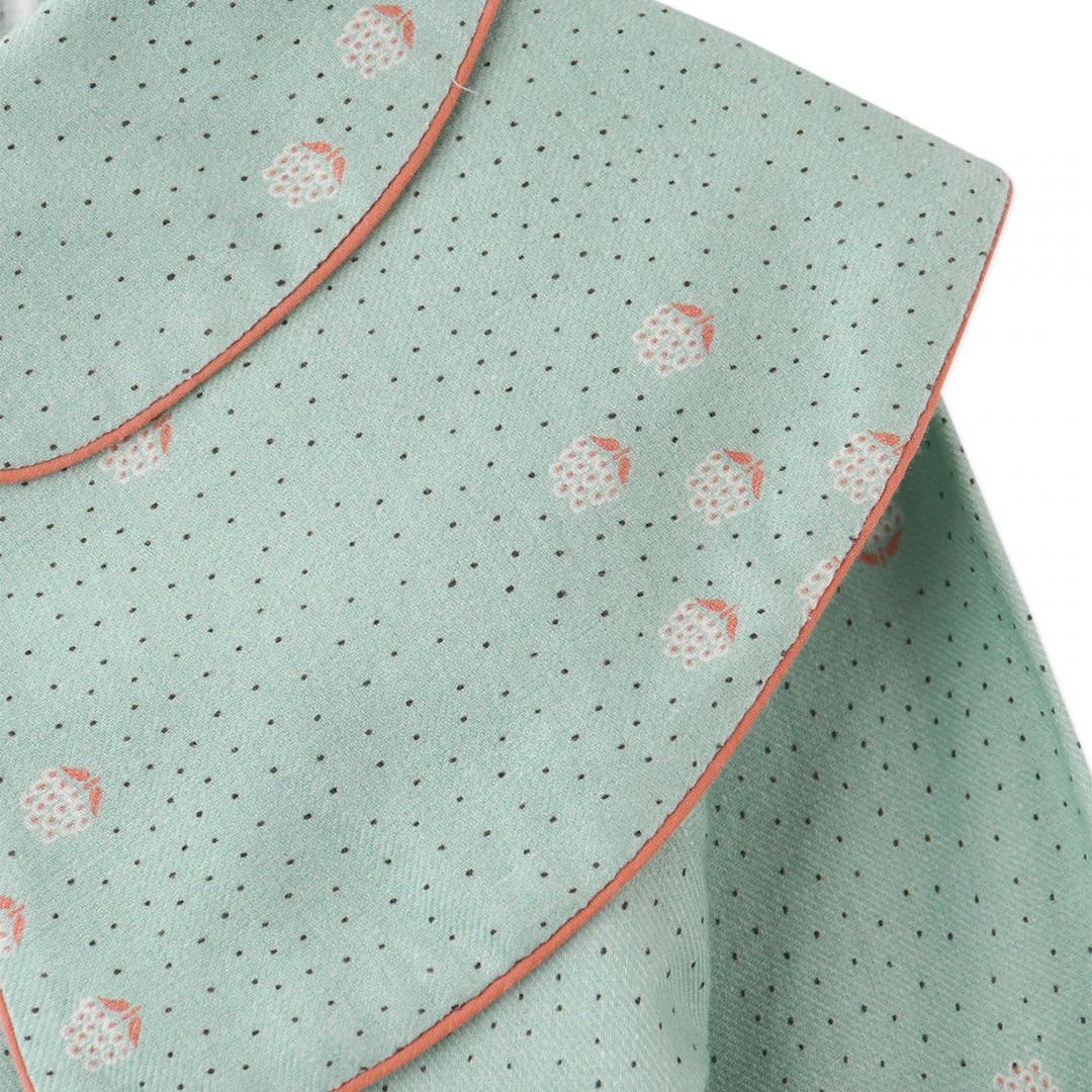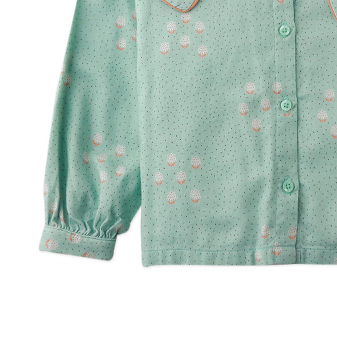 Add a touch of charm to your child's outfit with the Charlize Blouse in Mint Grove, featuring a stylish collar and a cape with contrast trim for a playful yet polished look.