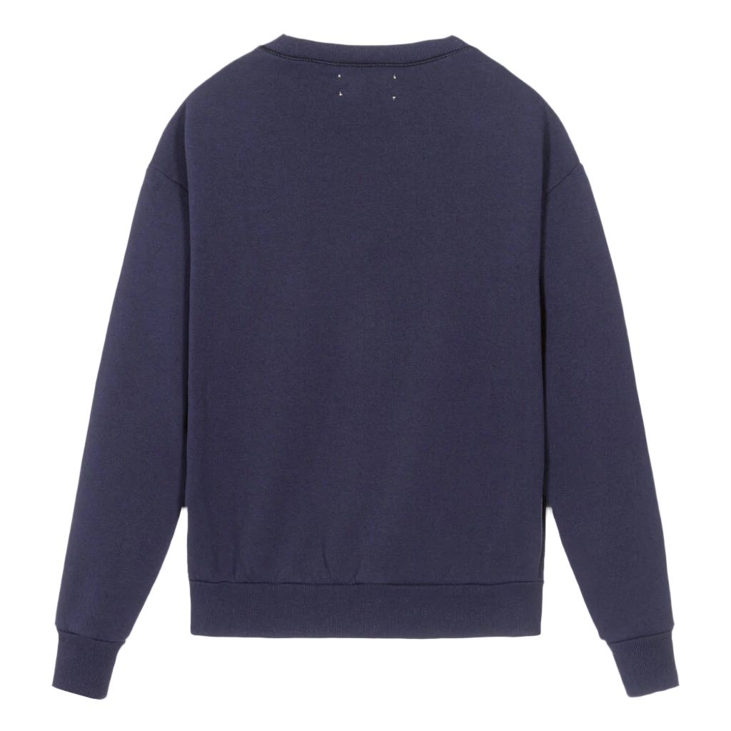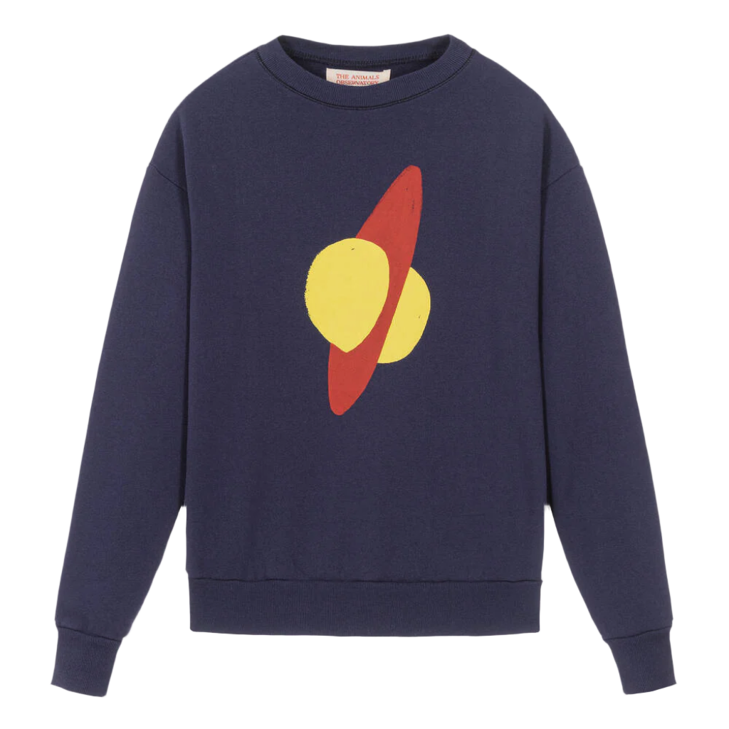 A deep blue cotton sweatshirt for teen boys and girls by The Animals Observatory. This crew neck jersey top is cool to wear on laid-back days with a distressed-effect planet graphic, dropped shoulders and ribbed trims.