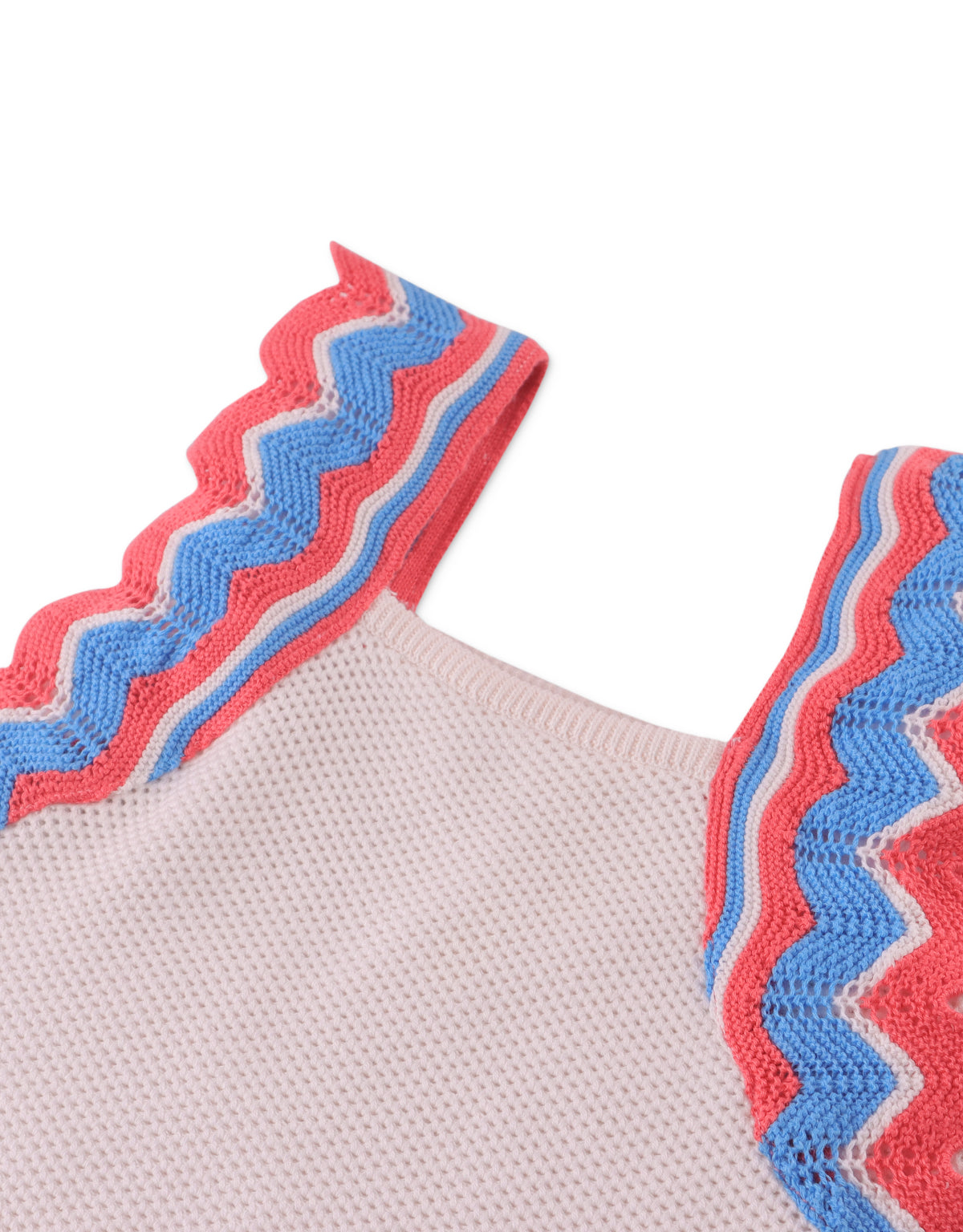 Chase the rainbow with style in our Giselle crochet-style top adorned with kaleidoscopic scallop details,