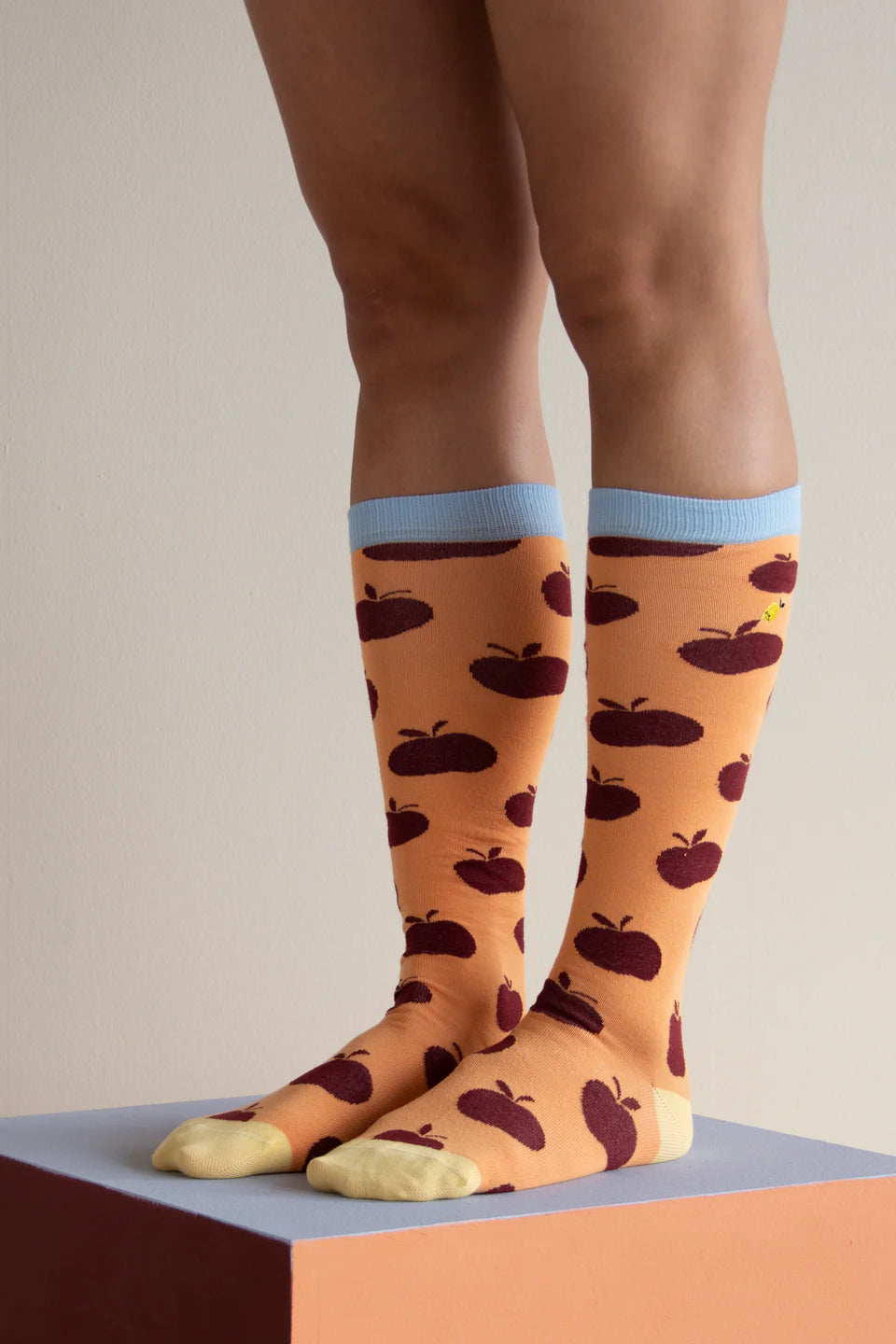 Quirky knee high socks with an apple pattern to make your sticky style complete.