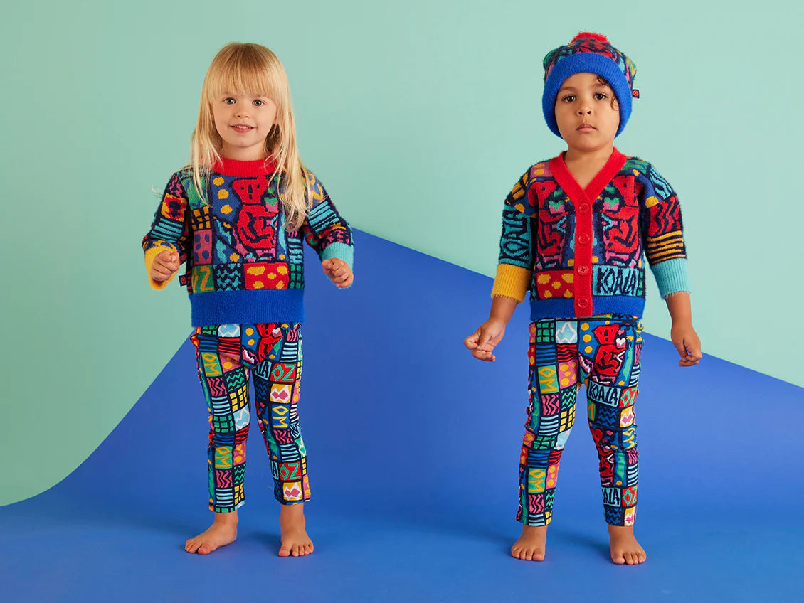 Features a central button opening, subtle fluffy finish and Jenny Kee x Halcyon Nights Koala Oz picture knit design.