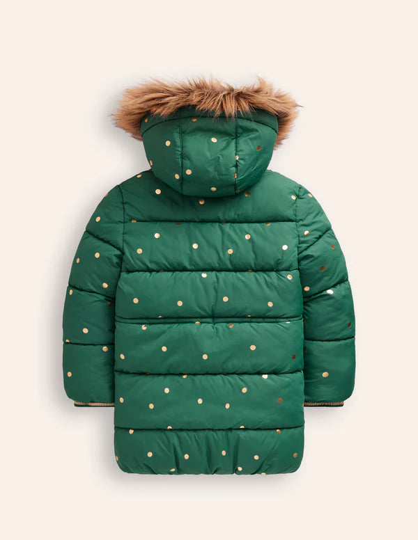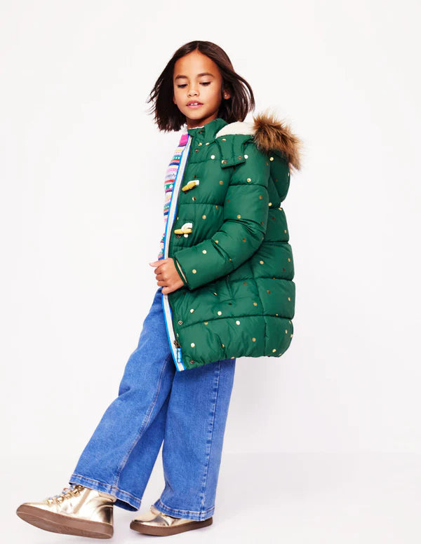 Attention leaf-kickers and puddle jumpers. Fear not, extra-cold days can still be spent playing outdoors in this showerproof duffle coat. The longer length and storm cuffs add extra cosiness, while the fleece-lined pockets are great for when the gloves get left at home (again).
