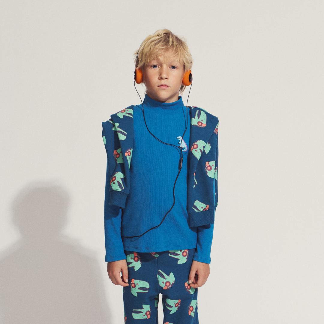 With its mock neck and long sleeves, the Andrei T-shirt keeps your little explorer warm, while the vibrant blue hue and embroidered T-Rex detail keep his style fresh and fun.