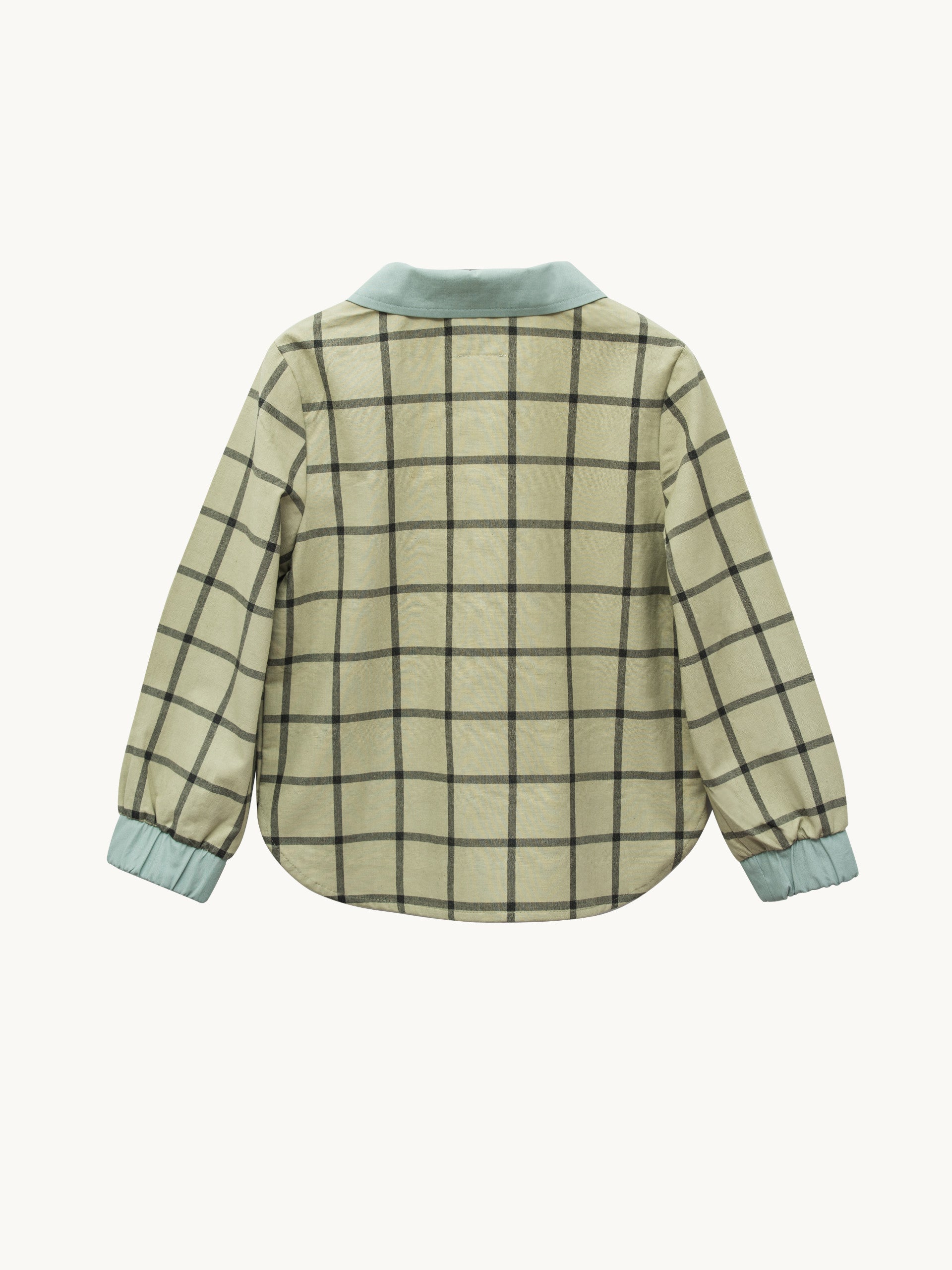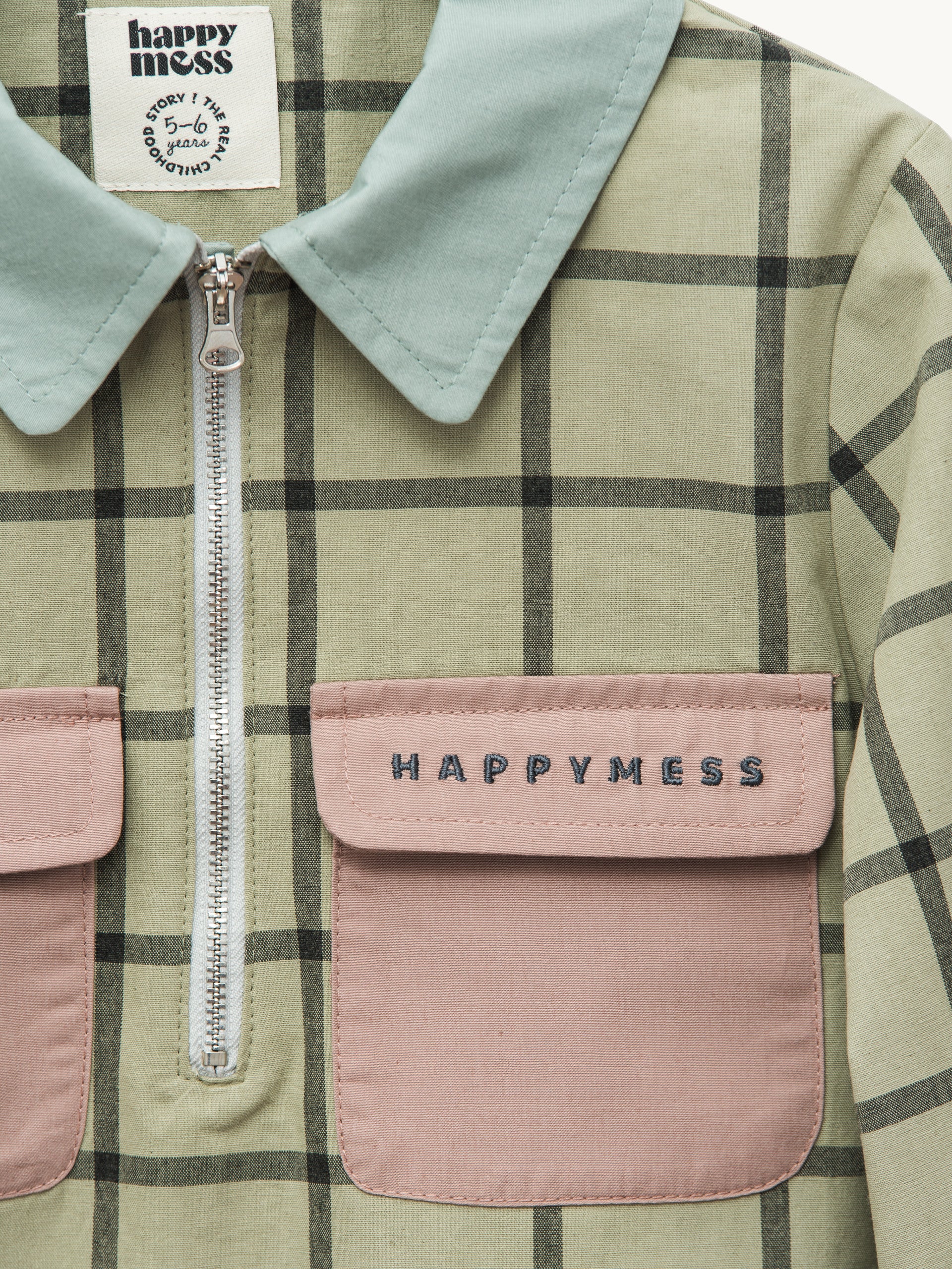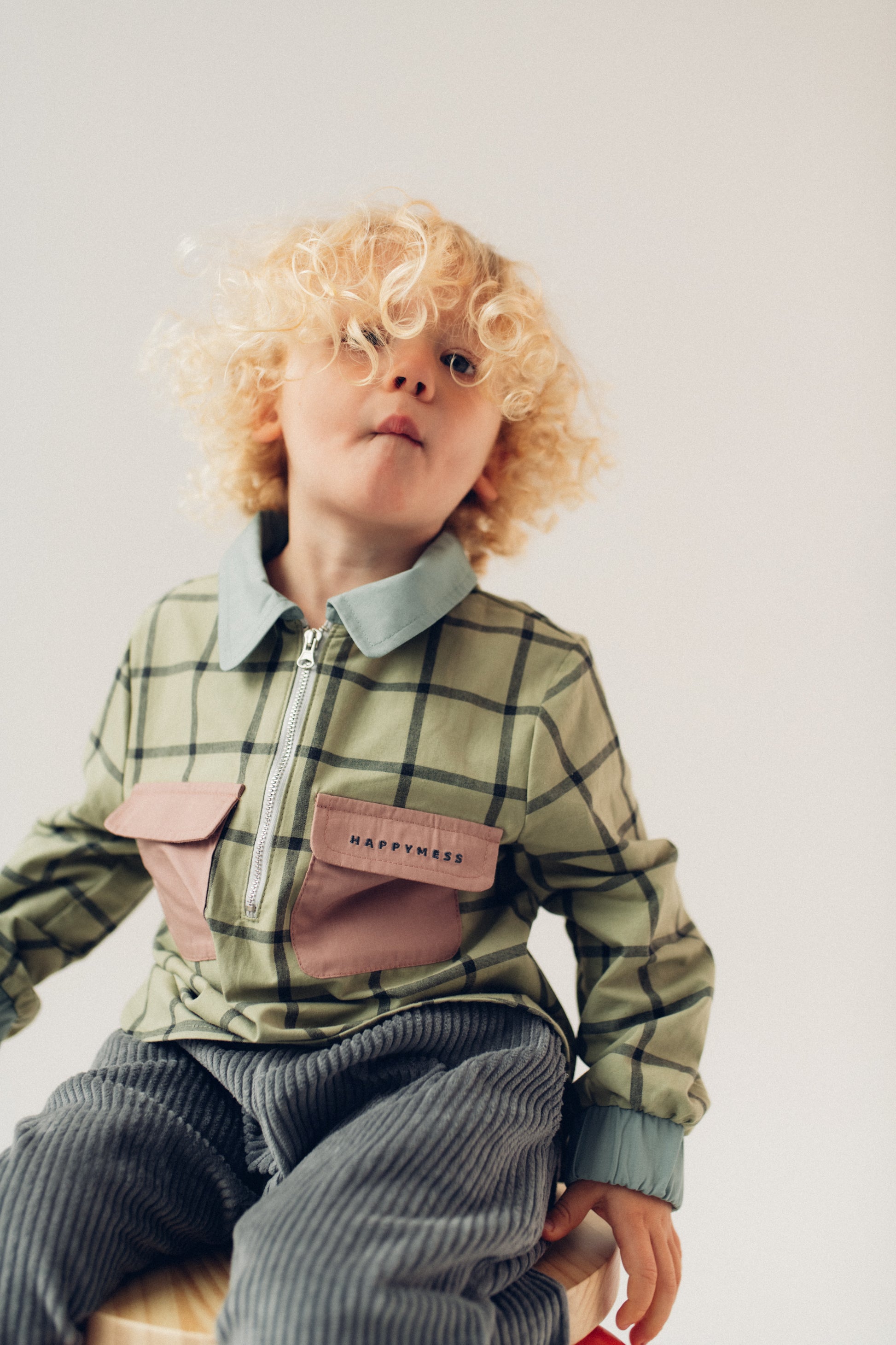 Cotton long sleeve checked shirt with a loose fit. Designed with a collar, embroidered pockets and cuffs on the sleeves. The shirt is longer at the back and has a zip fastening at the front. This design is our take on classic minimalism. We wanted to create a shirt for various occasions, while maintaining a childlike and carefree character and a comfortable form.
