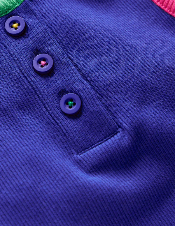 Crafted from soft cotton with a little stretch for extra comfort and finished with rainbow bright trim and three neat buttons.