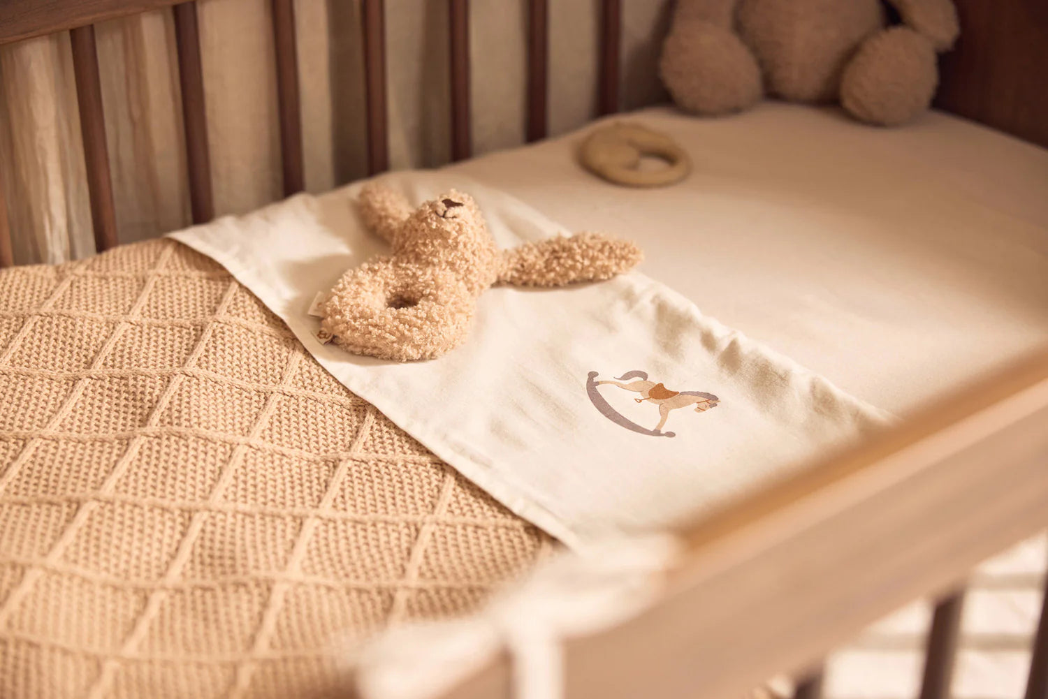 Your little one will be entertained for hours with this cute bunny rattle. This wonderfully cuddly item in soft biscuit-coloured bouclé fabric has a sweet embroidered heart as its nose. This rattle emits a sound when you shake it. Isn’t this the most adorable bunny?