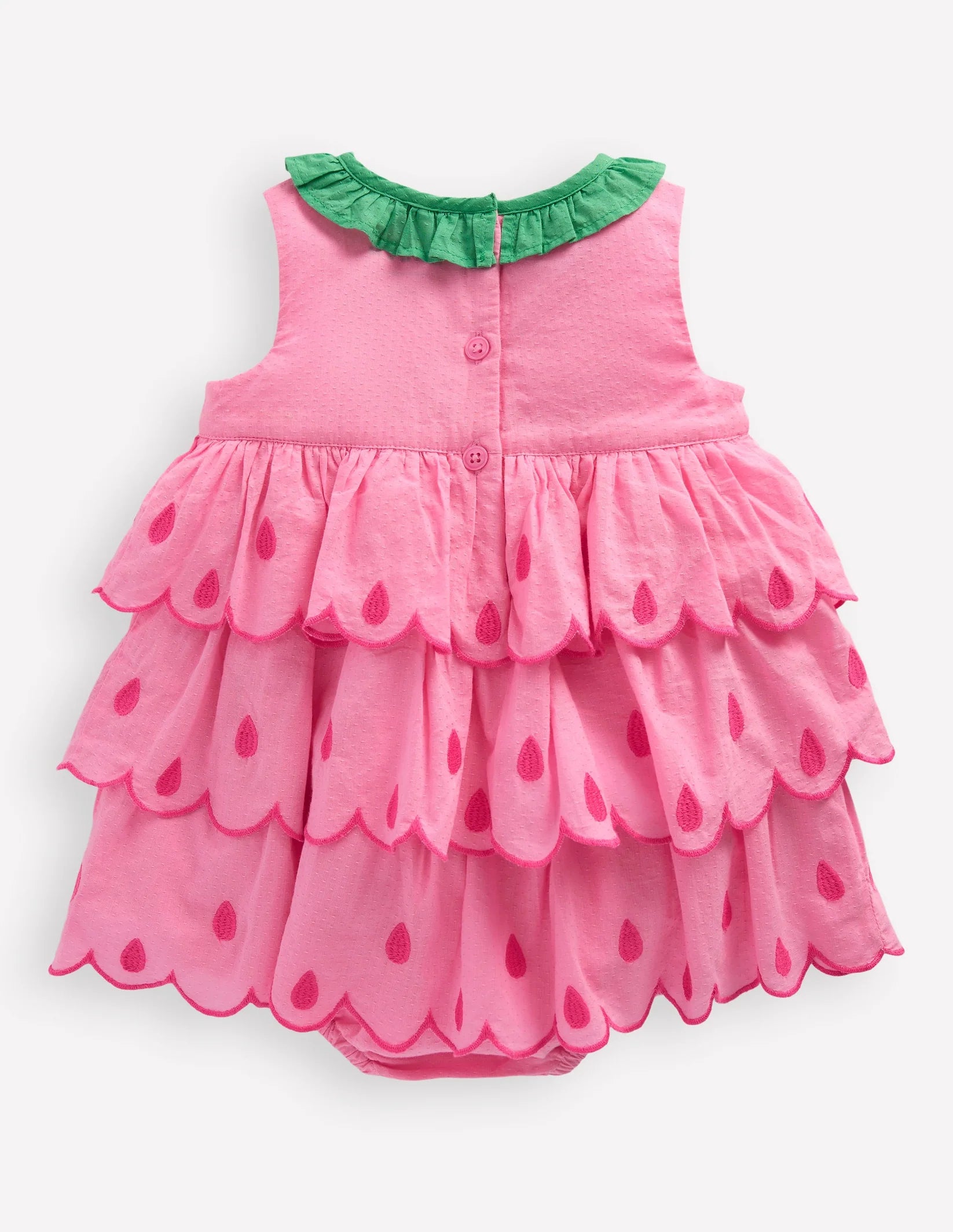 Ruffle Woven Romper-Bubblegum