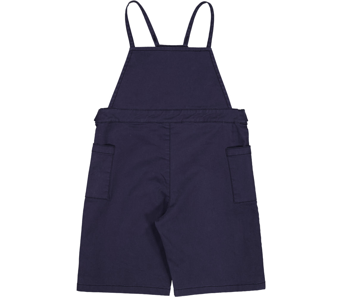 Chino suspenders for baby with wide legs for a comfortable look. The suspenders have two spacious pockets and can be adjusted at the waist with buttons on each side. The suspenders have adjustable straps with button closure
