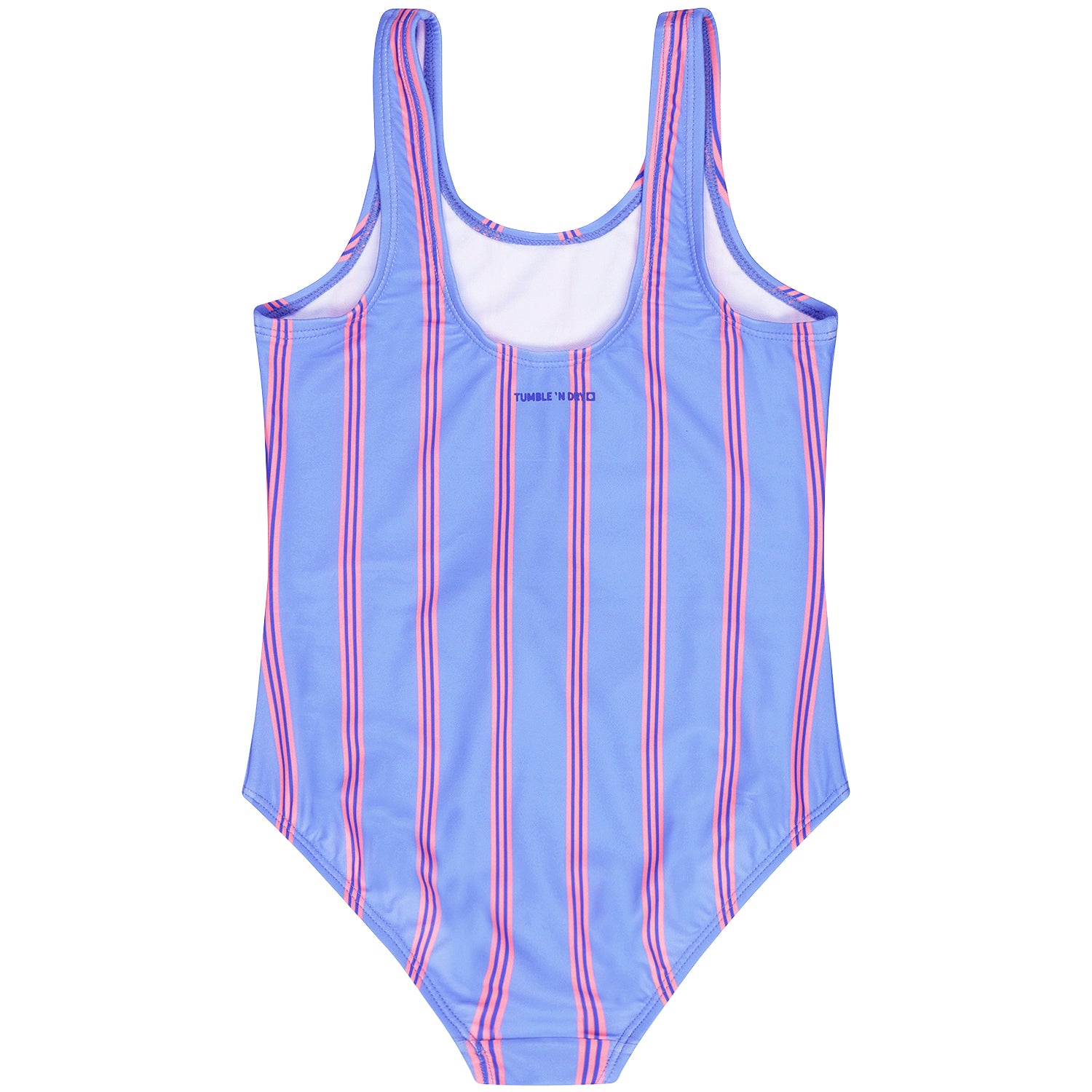 This cheerful girls' swimsuit is ideal for summer days at the beach or in the pool. The striking print in fresh blue and pink tones gives it a playful and trendy look. This swimsuit combines a unique style with a nice fit, so that girls can move freely while swimming or playing. Available in double sizes, so you can always find the right fit. A stylish choice for sunny moments!